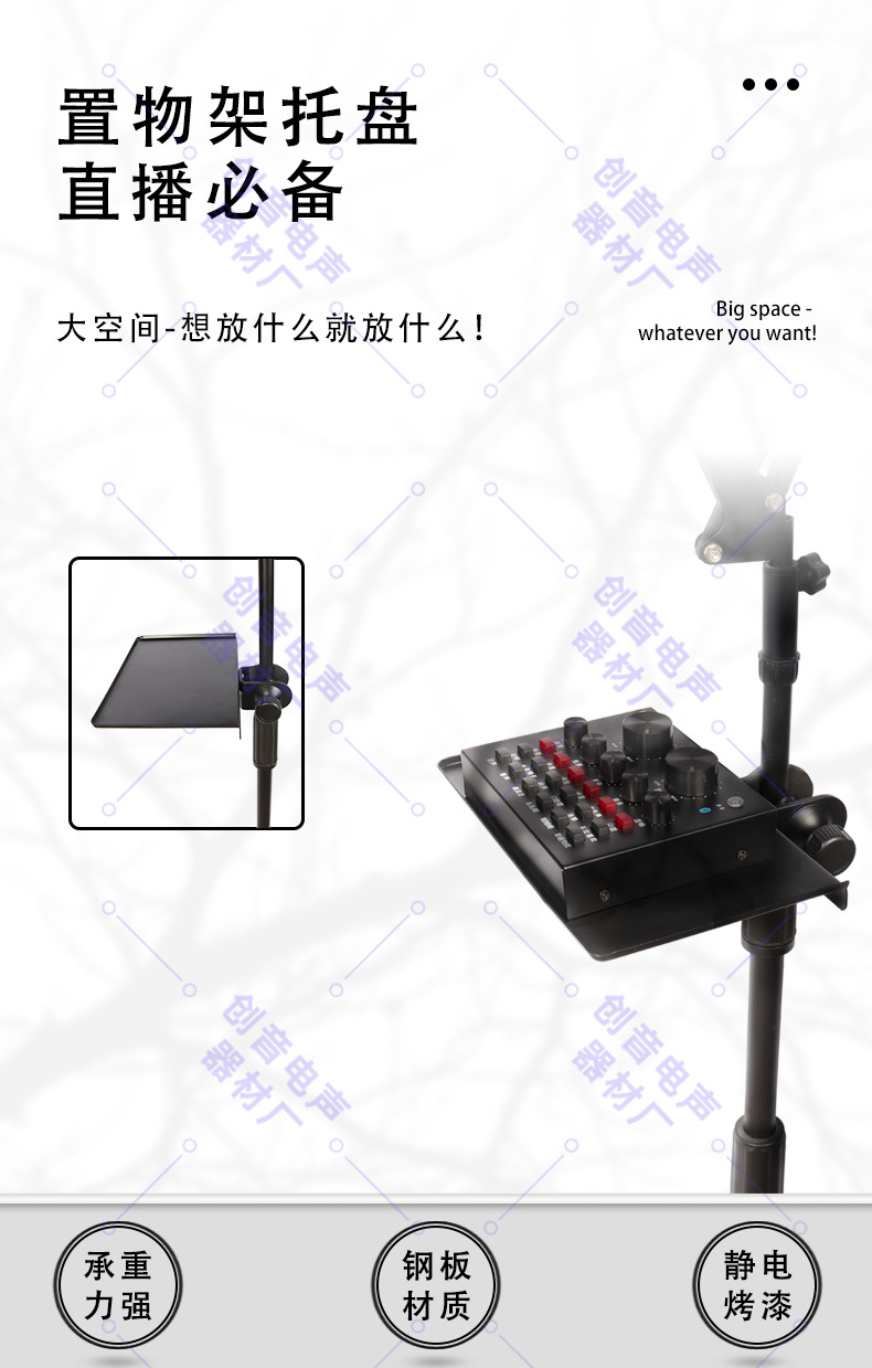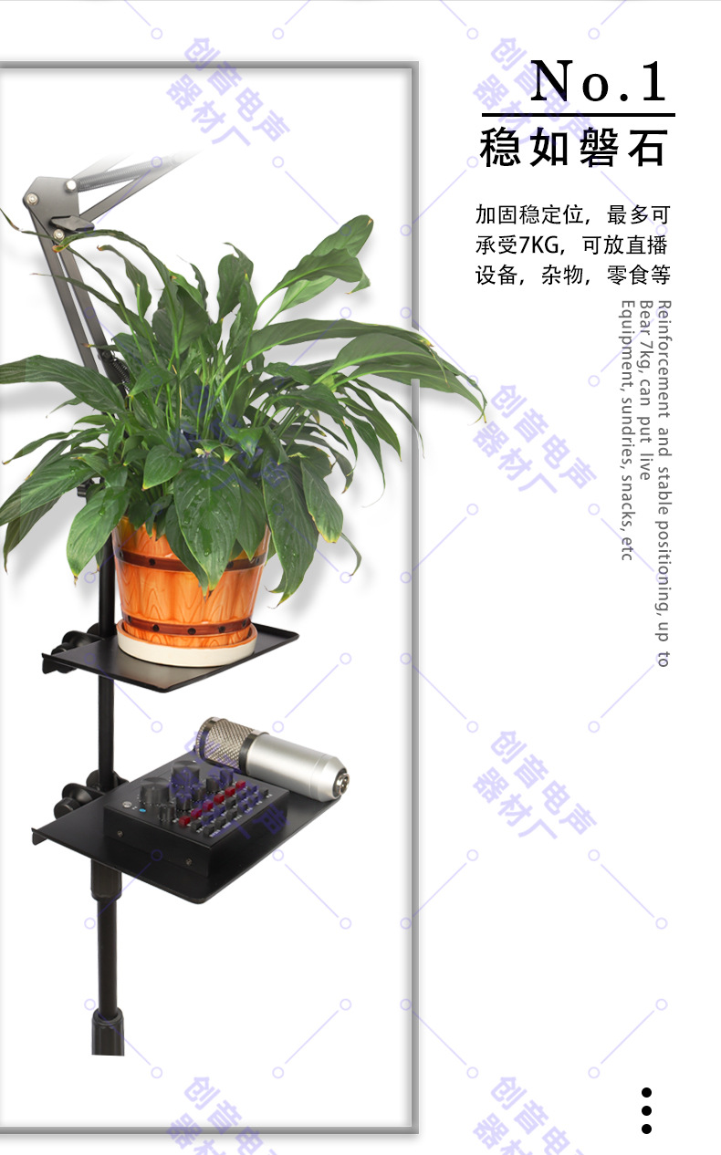 라이브 방송 스탠드 트레이 사운드 카드 받침대 노래방 장비 클립 휴대폰 2.1m 플로어 스탠드 삼각대 보관 트레이