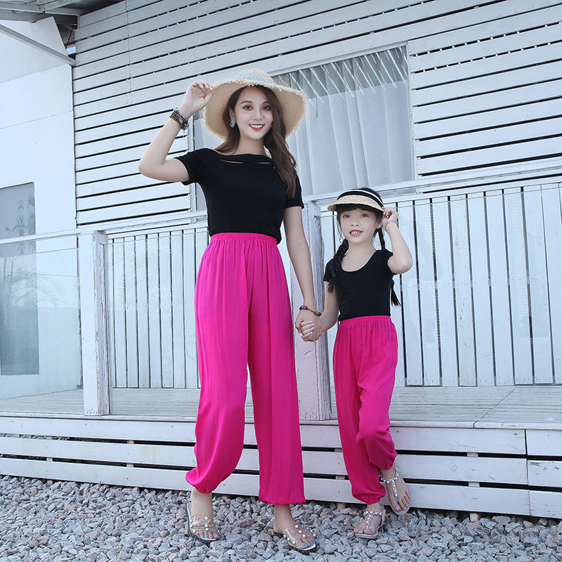 여름 남성과 여성의 홈 에어컨 바지 아침 트레이닝 바지 면 실크 블루머 인조 면 요가 댄스 바지 단색 모기 방지 바지스토어 가기