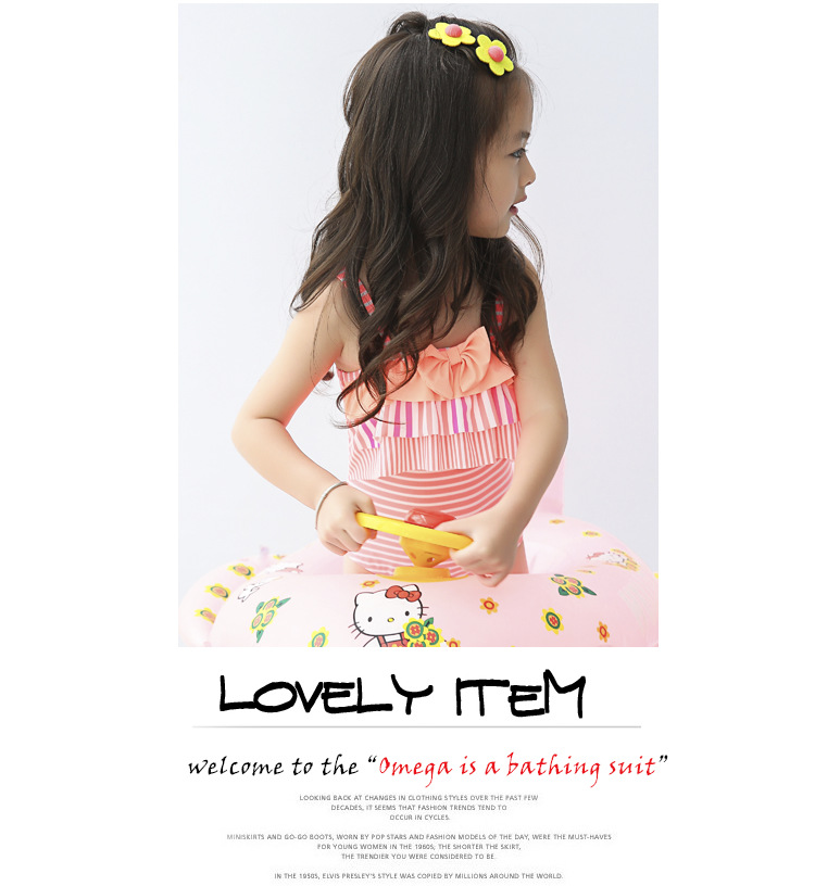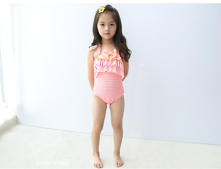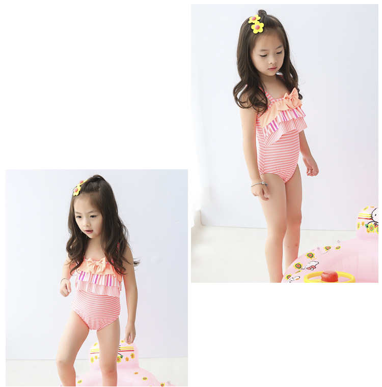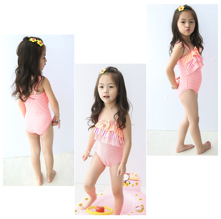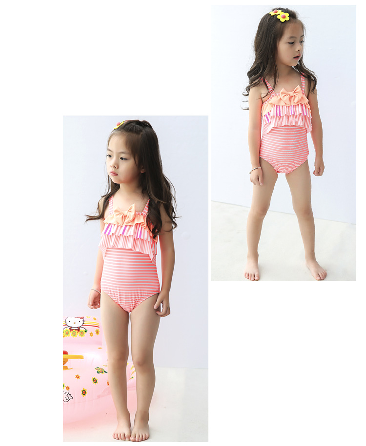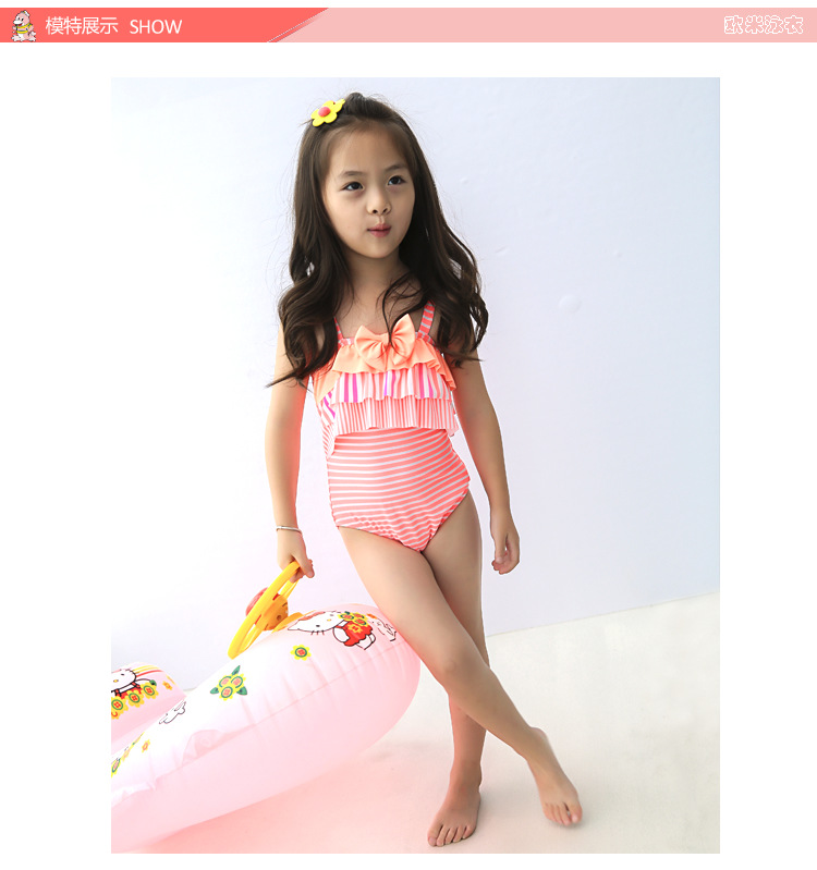 어린이 수영복 아기 작은 중학교 큰 어린이 학생 귀여운 소녀 오렌지 스트라이프 프린트 케이크 온천 원피스 수영복스토어 가기