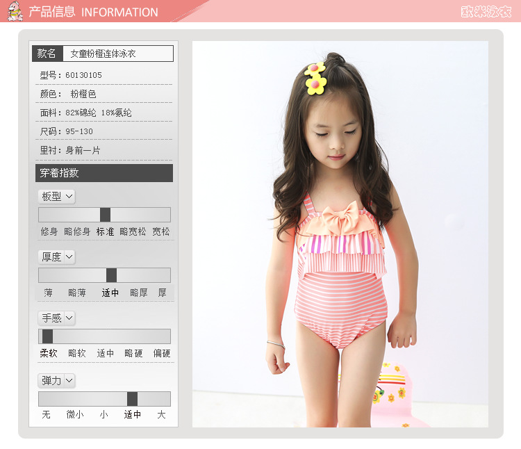 橙色鲜艳,人群中一眼就能看见款式新颖,胸前一个可爱蝴蝶结元素蛋糕皱褶一层层有层次感穿上效果好,显身材泳衣身前一面和裤裆处都有里衬