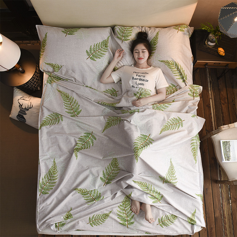 순수 코튼 여행 호텔 슬리핑 백 더러운 고립 된 성인 인쇄 야외 초경량 휴대용 더블 단일 위생 라이너