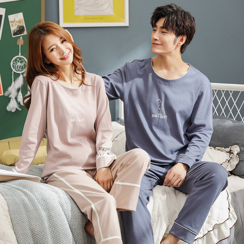 커플 잠옷 순면 봄 가을 여성 홈웨어 순면 가을 겨울 세트 대형 남성 홈웨어 커플 스타일스토어 가기