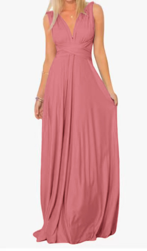 欧美爆款多穿法多绳交叉露背性感绷带连衣裙长裙礼服