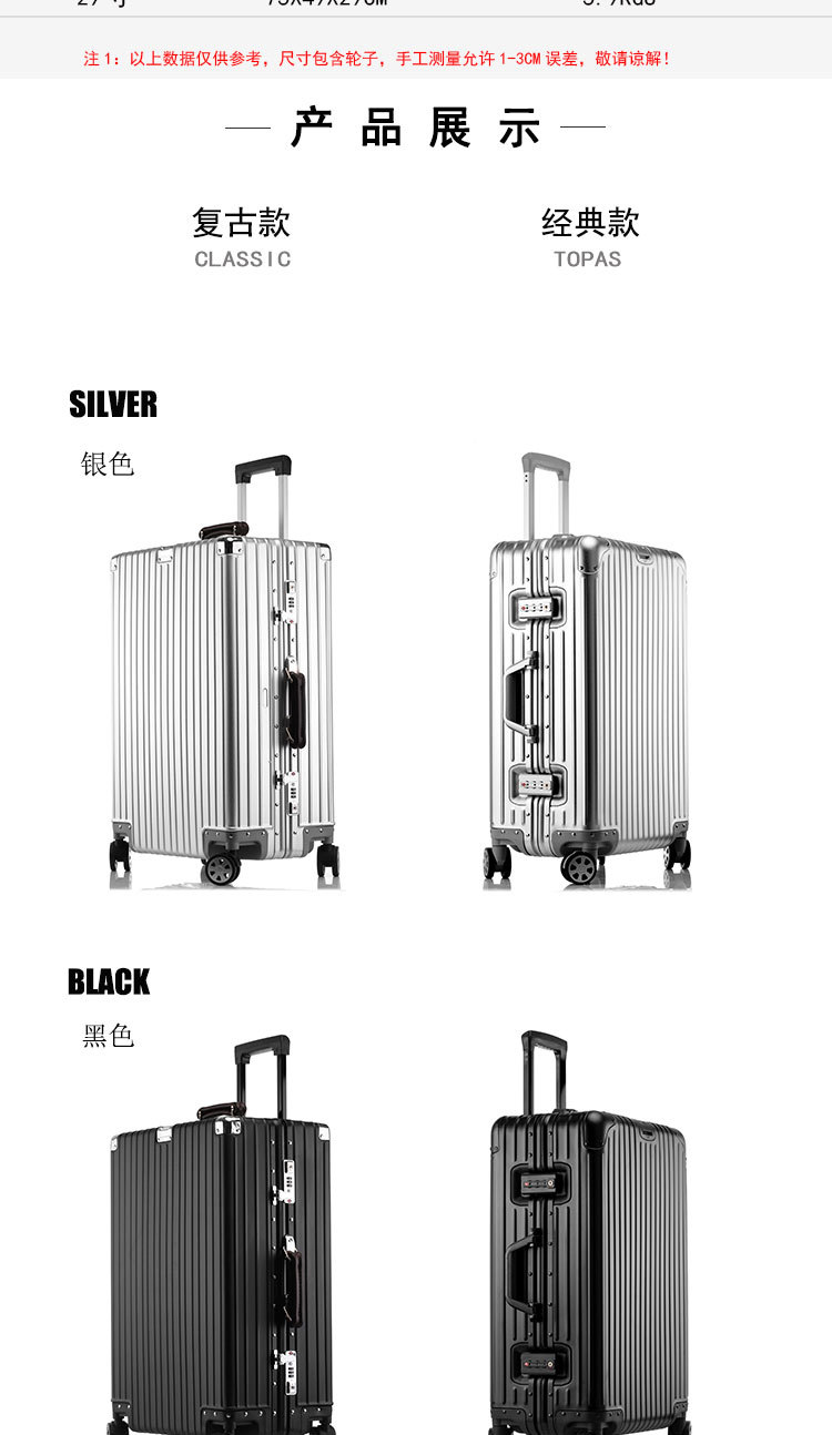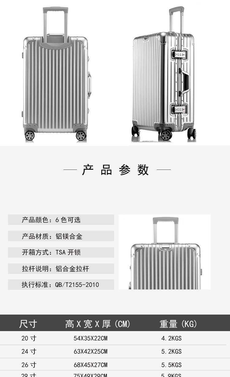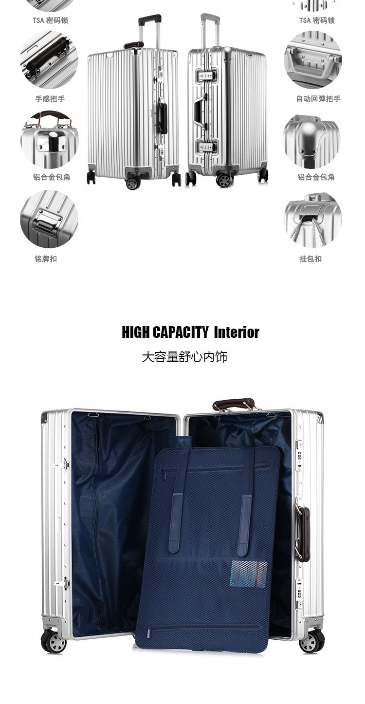 알루미늄 마그네슘 합금 트롤리 케이스 20 인치 탑승 케이스 유니버설 휠 24 인치 고급 수하물 가방 레트로 모든 알루미늄 케이스 여성스토어 가기