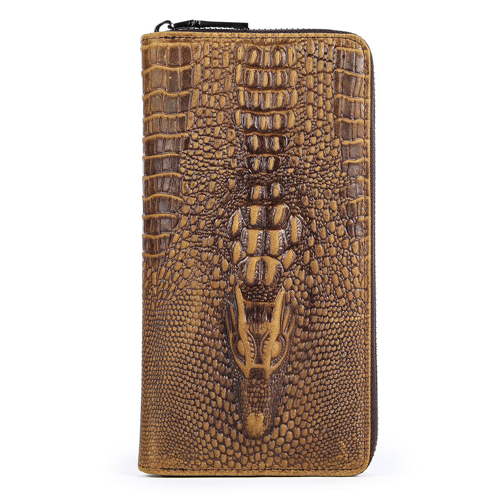 아마존 남성용 긴 지갑 정품 가죽 악어 패턴 비즈니스 멀티 카드 홀더 남성용 클러치 탑 레이어 소가죽 지갑스토어 가기