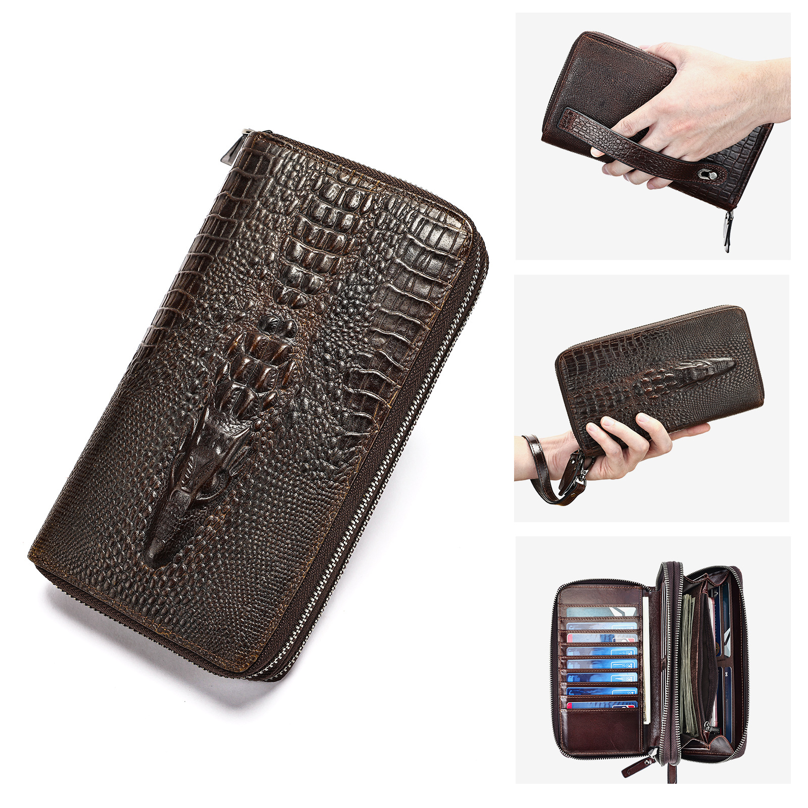 아마존 남성용 긴 지갑 정품 가죽 악어 패턴 비즈니스 멀티 카드 홀더 남성용 클러치 탑 레이어 소가죽 지갑