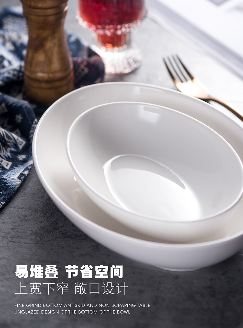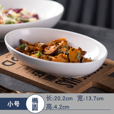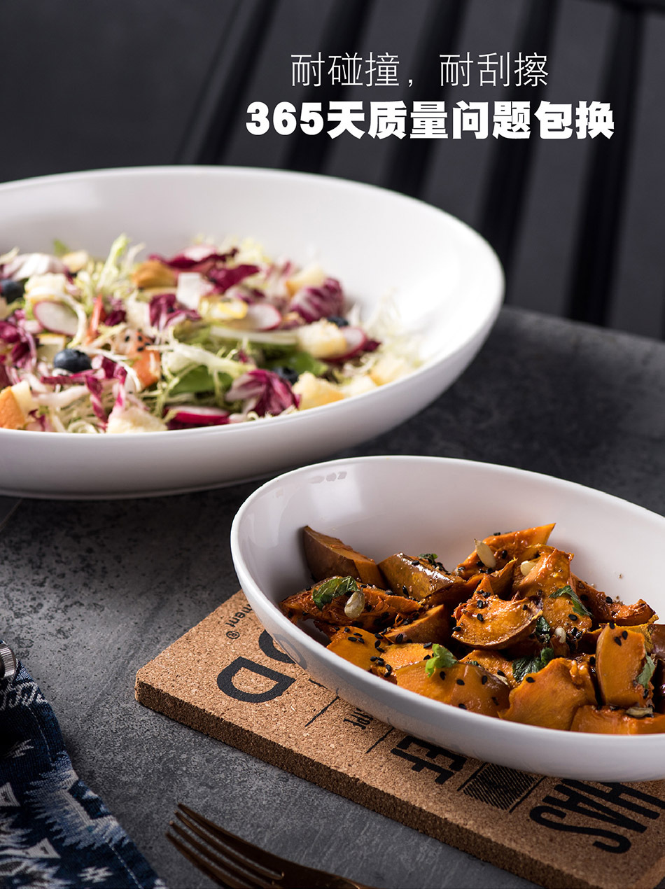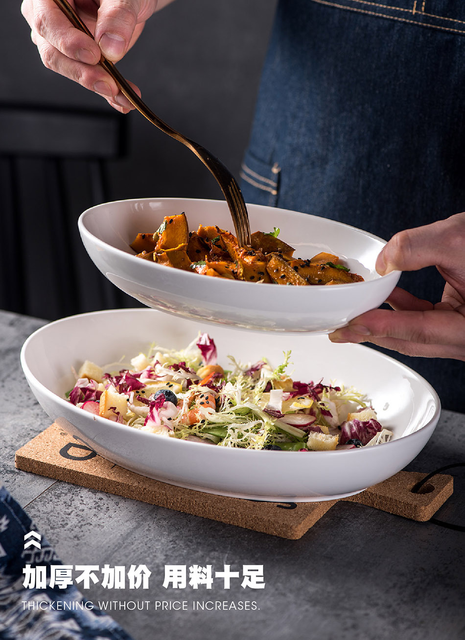 유럽 스타일 크리 에이 티브 타원형 순수 흰색 세라믹 식기 가정용 호텔 깊은 요리 찐 생선 접시 샐러드 디너 플레이트