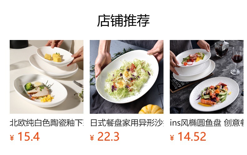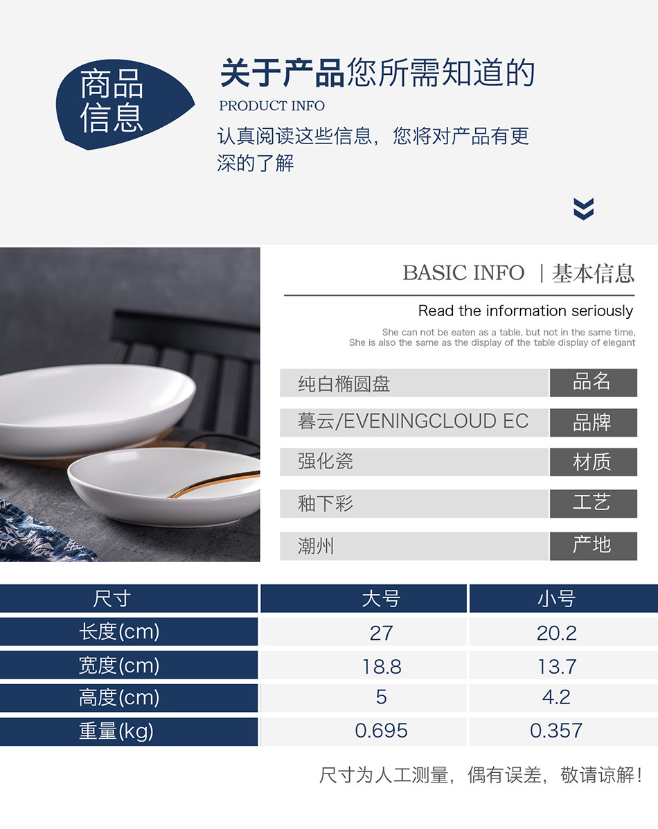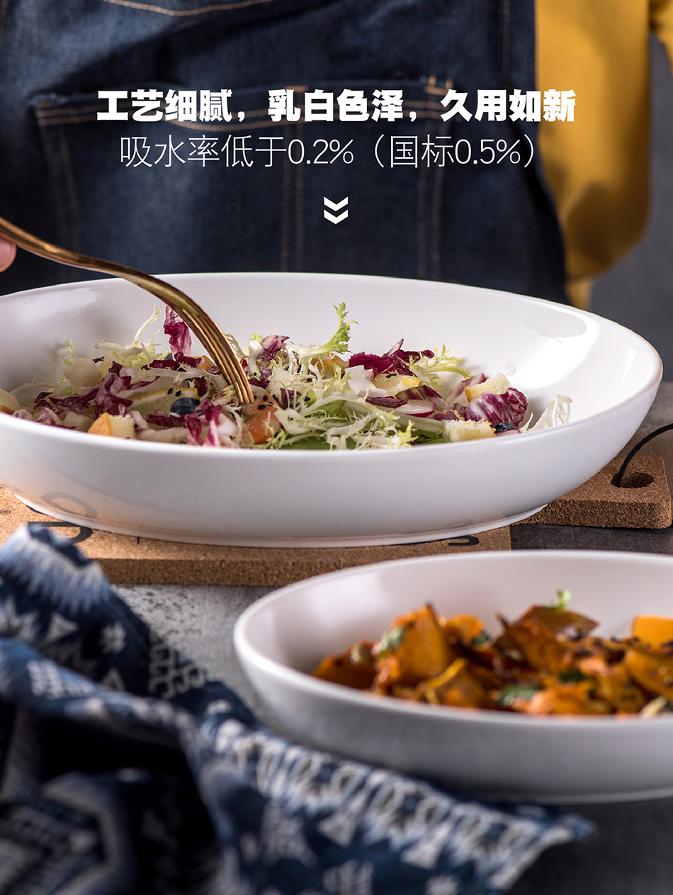 유럽 스타일 크리 에이 티브 타원형 순수 흰색 세라믹 식기 가정용 호텔 깊은 요리 찐 생선 접시 샐러드 디너 플레이트
