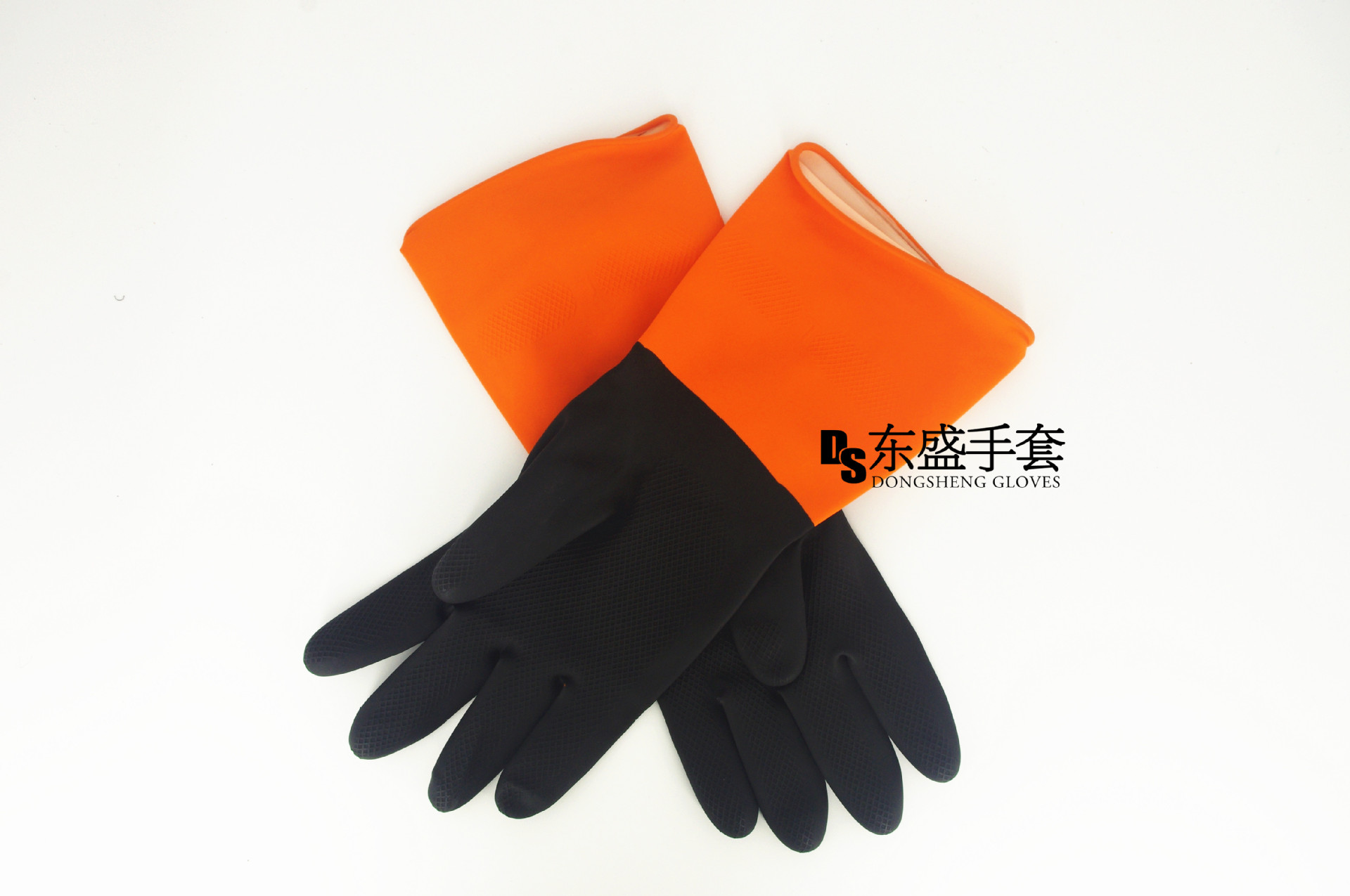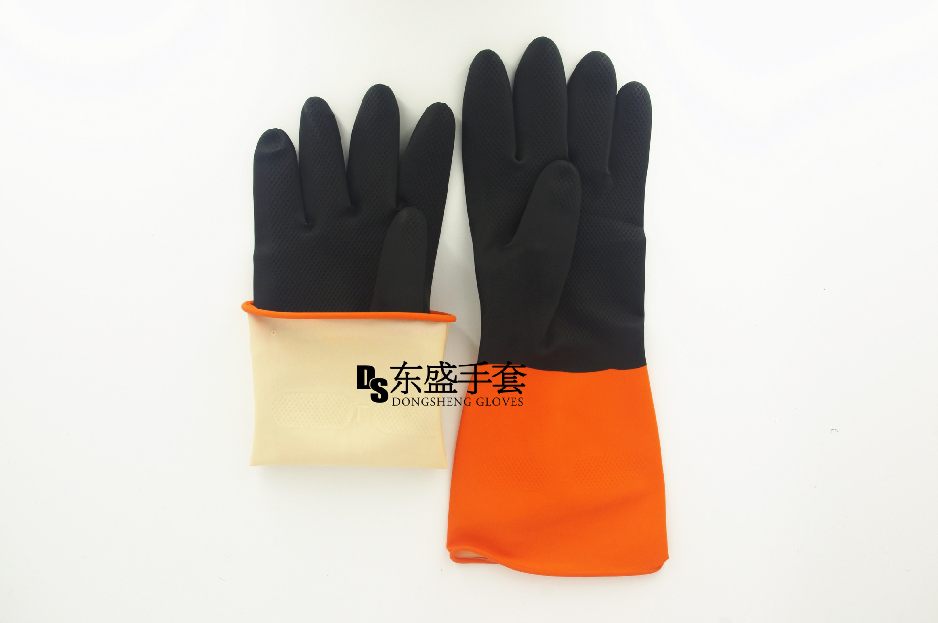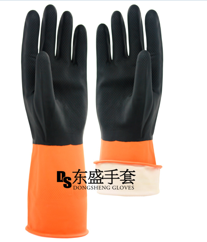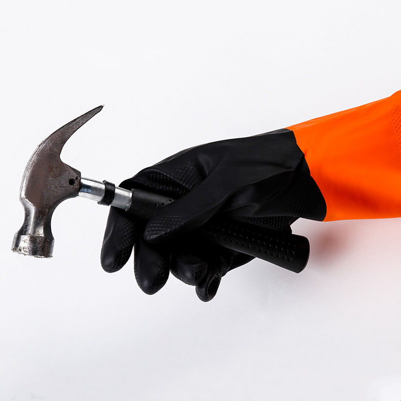 공장 도매 블랙 오렌지 더블 컬러 라텍스 장갑 산 및 알칼리 방지 산업용 장갑 가사 공사 내마모성 장갑