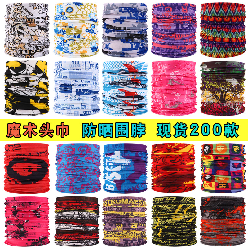 1、至少有十种以上的 不同扎法,变换出不同的效果,可用作头巾、围巾、头带、风沙罩、无檐圆帽、帽兜、护腕......