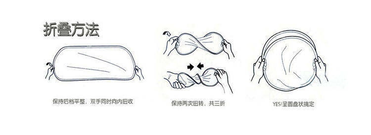 【折叠说明】:2个圆圈是连在一起的,对折后,8字形扭动对压,然后用自带的捆绳一拉即可固定成小圈!