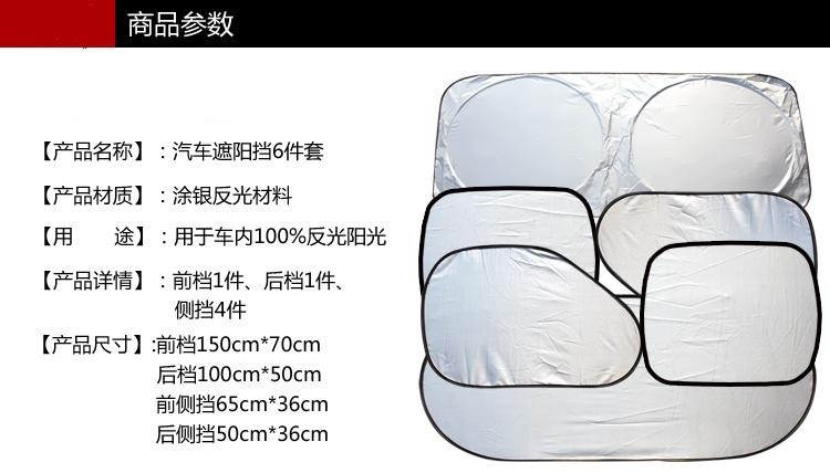 【名称】汽车遮阳挡套装  :涂银六件套