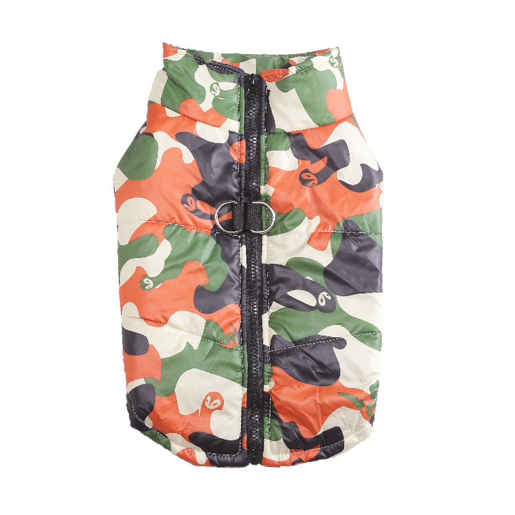 애완동물 겨울용 면옷, 뒷면 지퍼가 있는 면 재킷, 전면 위장 무늬 강아지 스키복, 대형견용 두꺼운 보온복