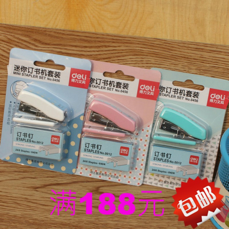 델리 0456 스테이플러 세트 귀여운 만화 스테이플러 미니 스몰 사이즈 스테이플러 학생 문구 선물