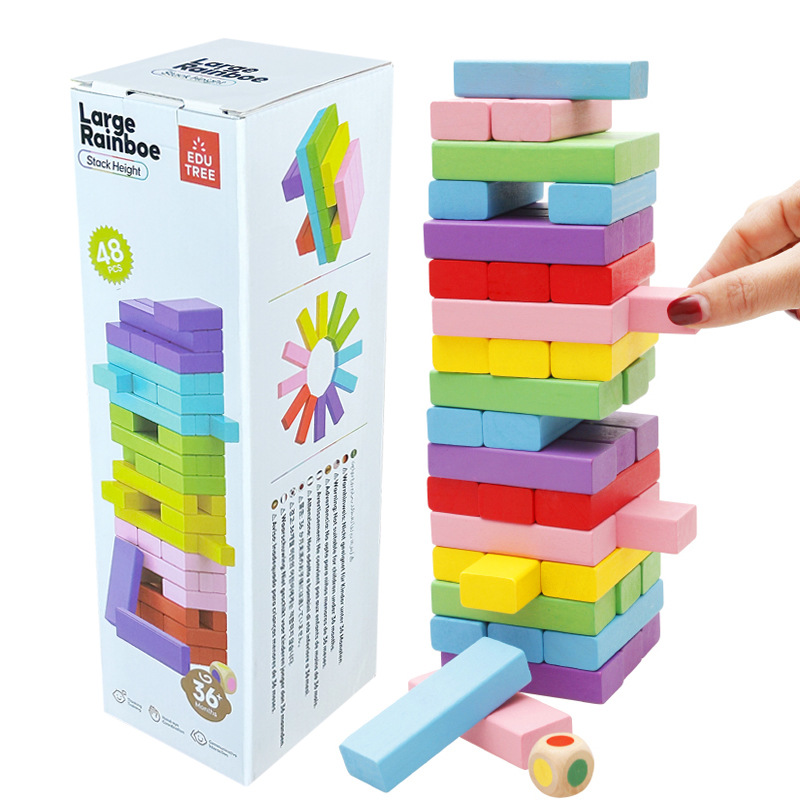 나무 공 어린이 교육 장난감 큰 무지개 쌓인 높은 빌딩 블록 교육 게임 48 조각 부모-자식 게임