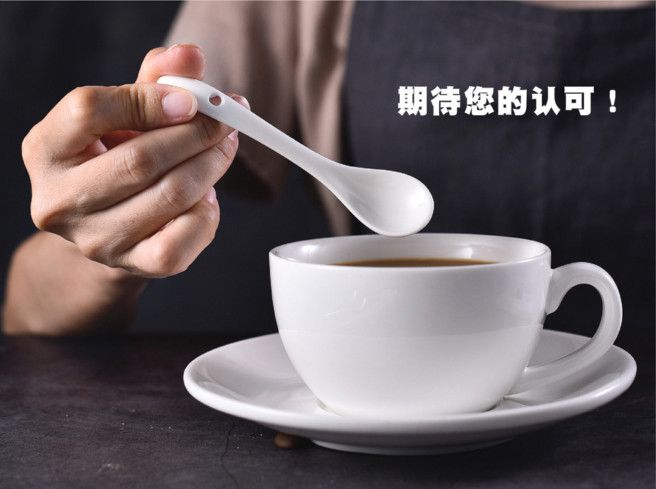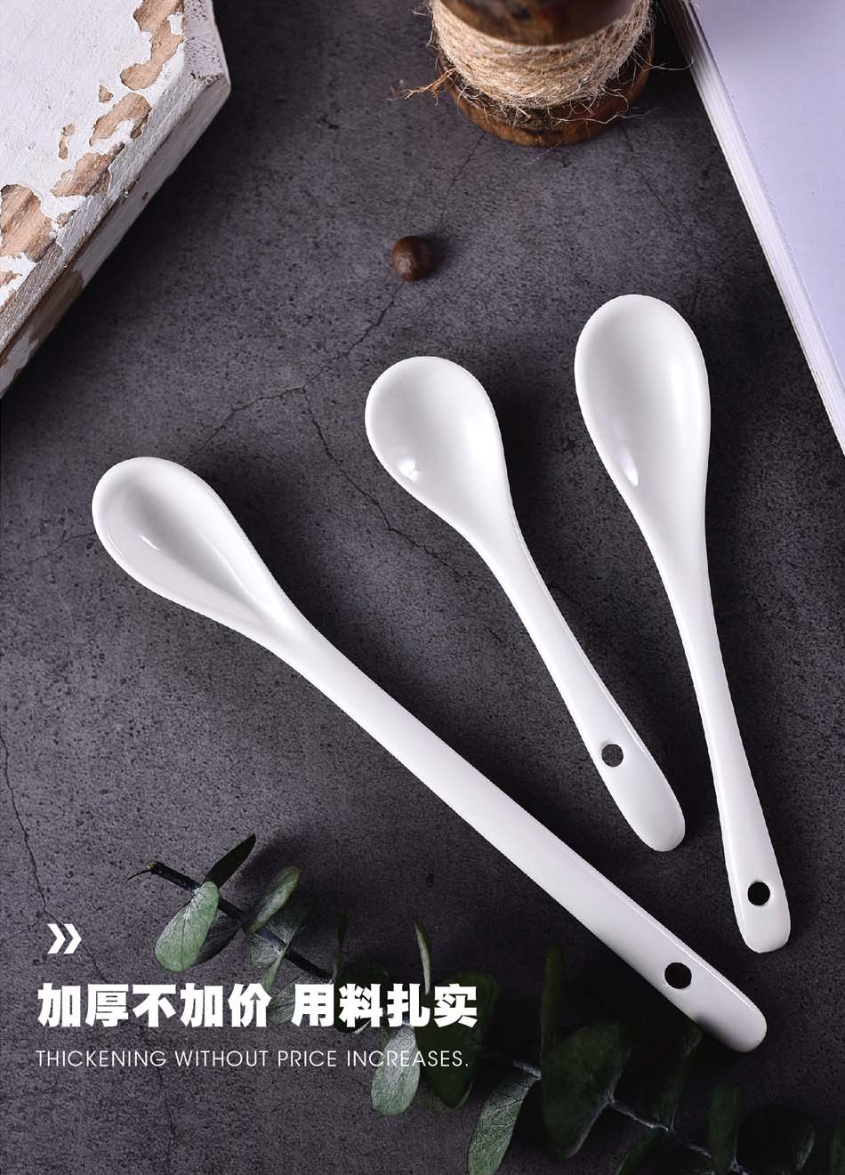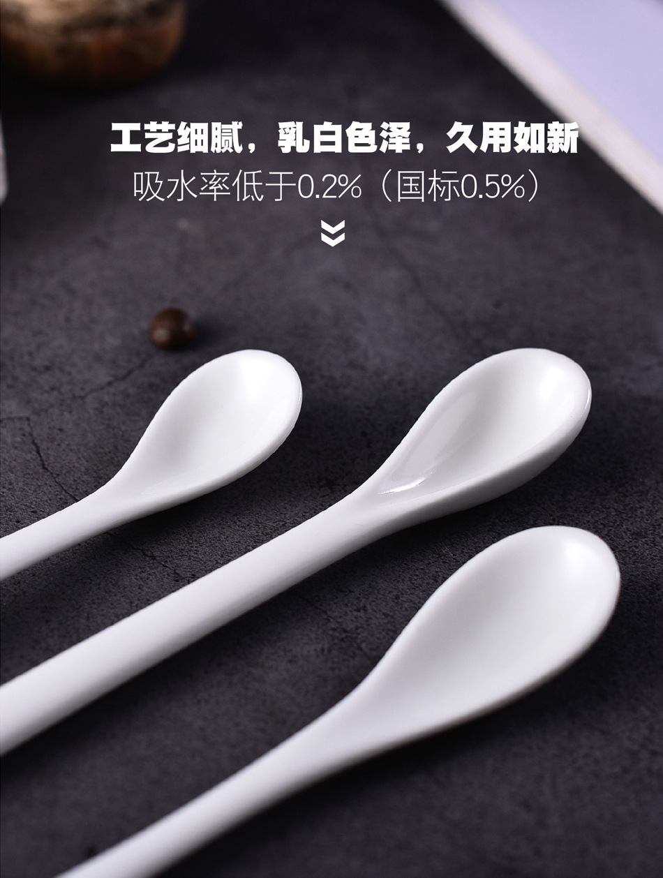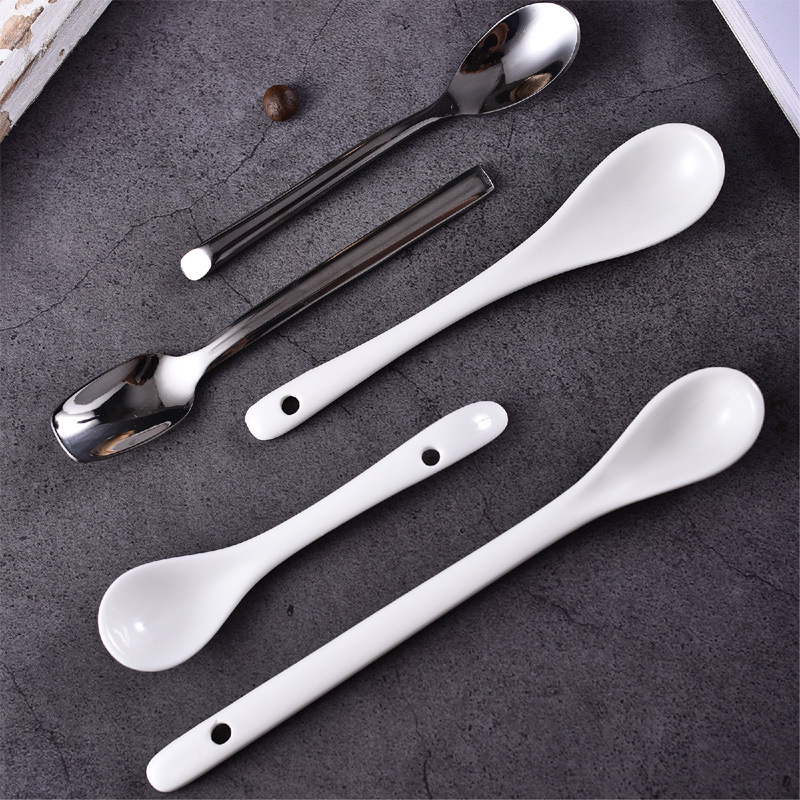 不锈钢咖啡勺陶瓷汤勺 西餐长柄搅拌勺调羹调味甜品儿童陶瓷餐具