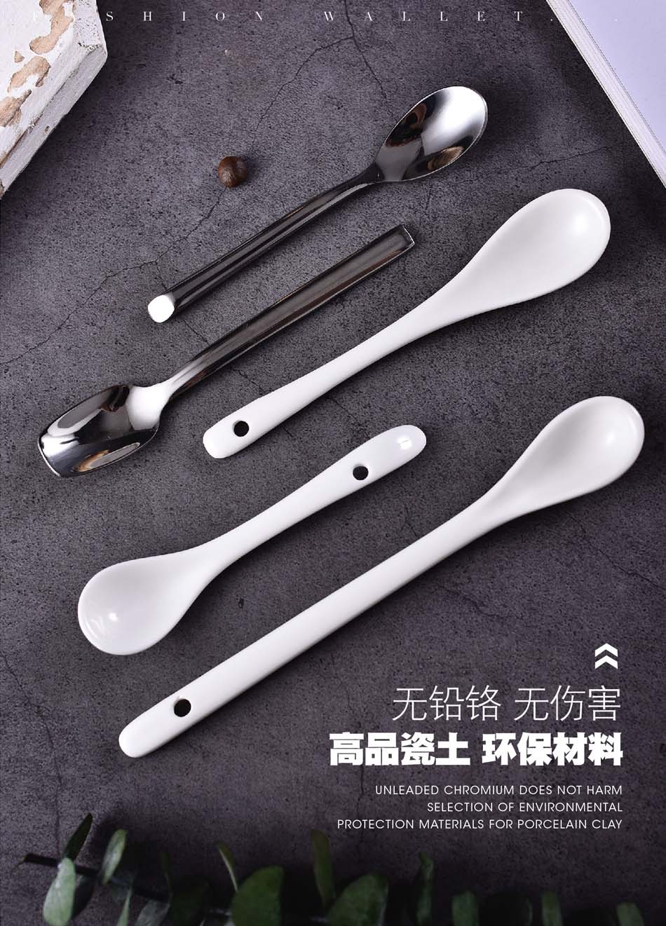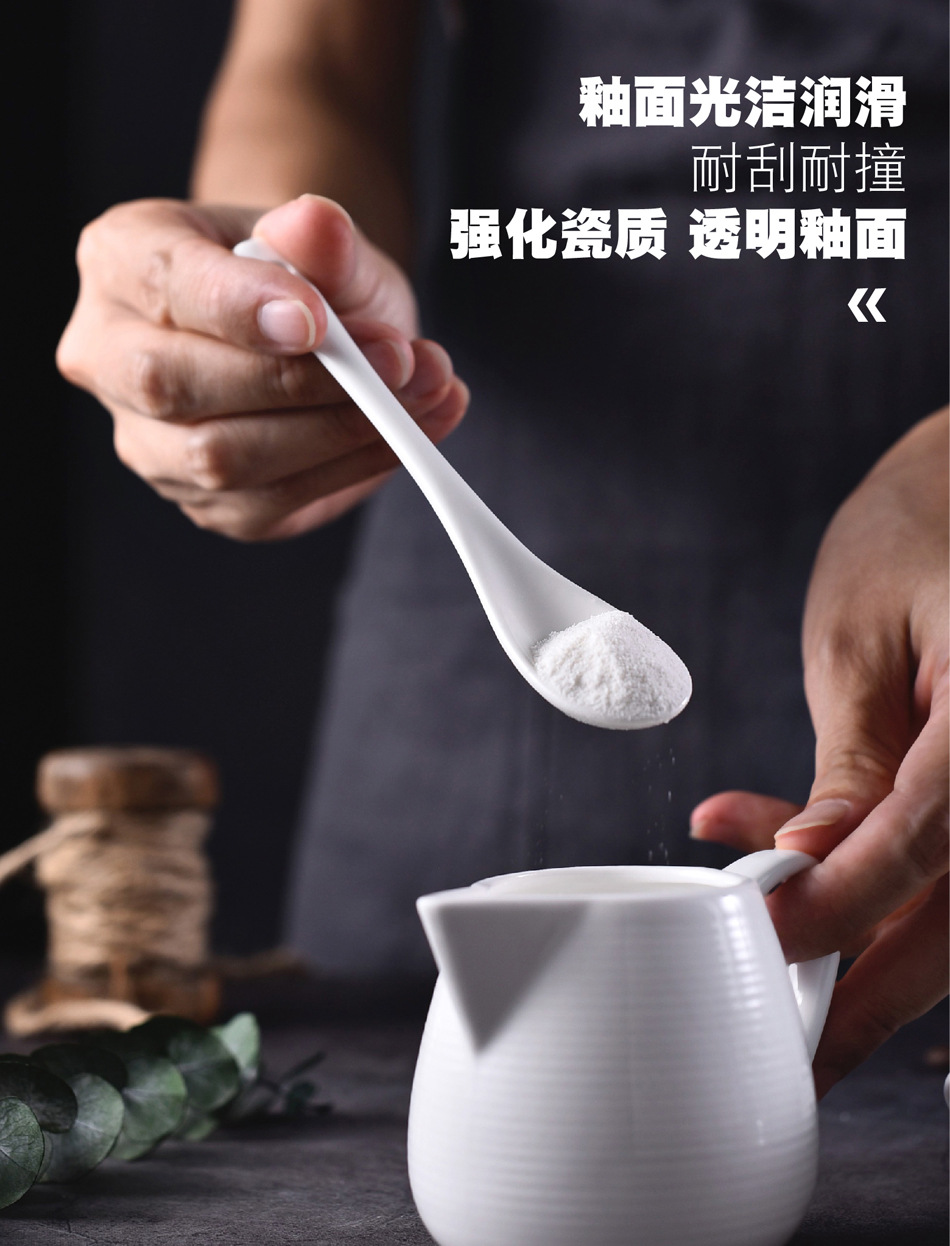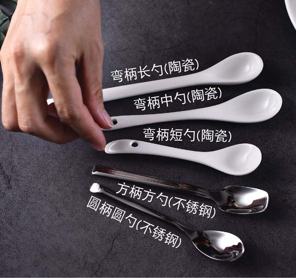不锈钢咖啡勺陶瓷汤勺 西餐长柄搅拌勺调羹调味甜品儿童陶瓷餐具