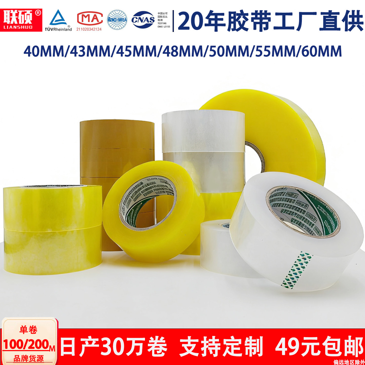 리안슈오 공장 투명 테이프 4.5cm 두께 2.5cm 포장용 밀봉 테이프 노란색 테이프 한 박스스토어 가기