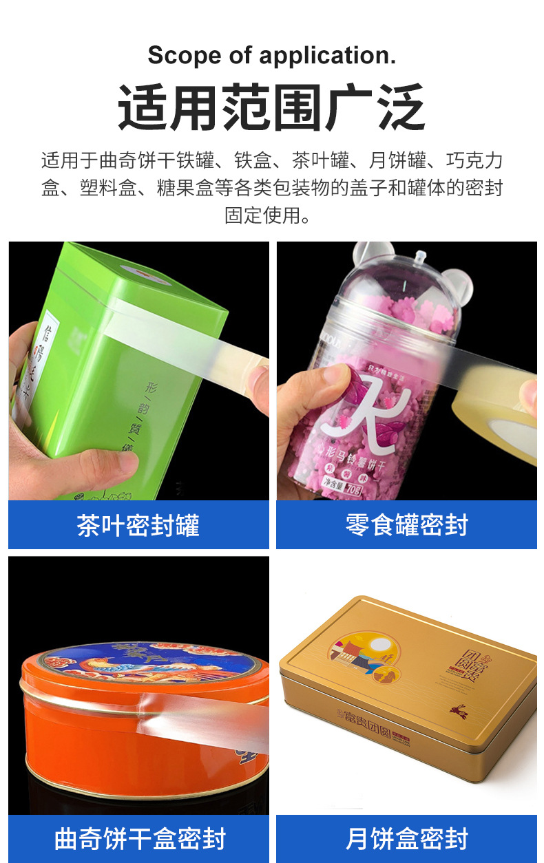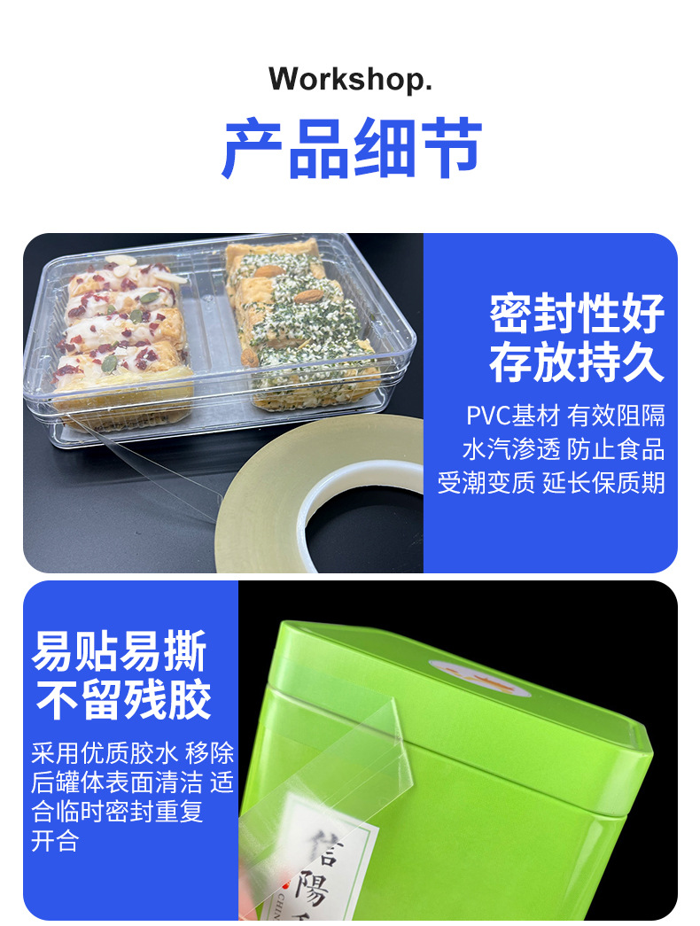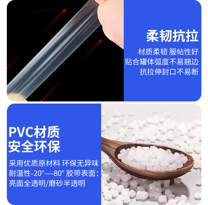 투명 PVC 식품 상자 기계용 밀봉 테이프, 깡통 밀봉 테이프, 무흔적 무잔여 접착제 밀봉 테이프