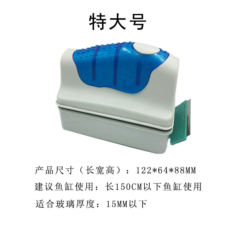 3、本品采用强力磁铁制造而成,使用时只需将其中一块放入水族箱内,另一块在缸外即可吸附在一起,移动外面一块的同时带动里面一块,达到水族箱里外的一次性清洁,内部采用悬浮式设计,避免意外落入水族箱内不方便取。