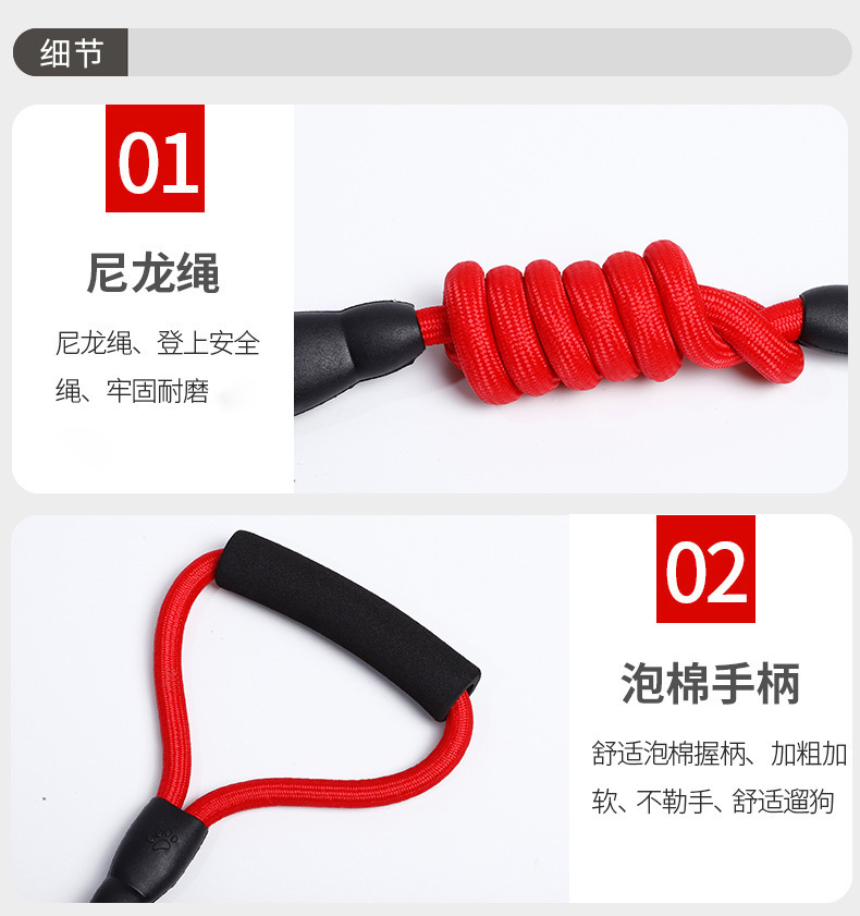 애완 동물 단색 견인 로프, 내마모성 암벽 등반 로프, 중형 및 대형 개 야외 폼 손잡이, 방폭형 개 로프 도매