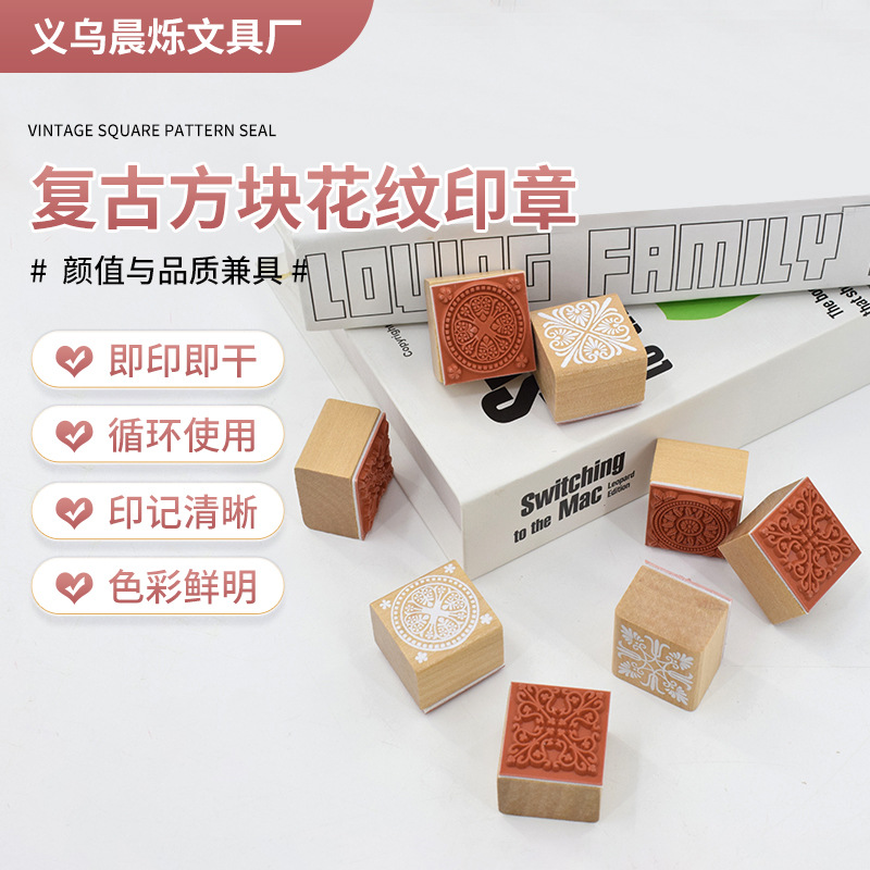 레트로 스퀘어 패턴 씰 DIY3 * 3 나무 저널 씰 로맨틱 레이스 복고풍 씰 유럽 스타일 꽃스토어 가기