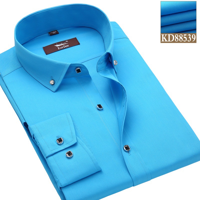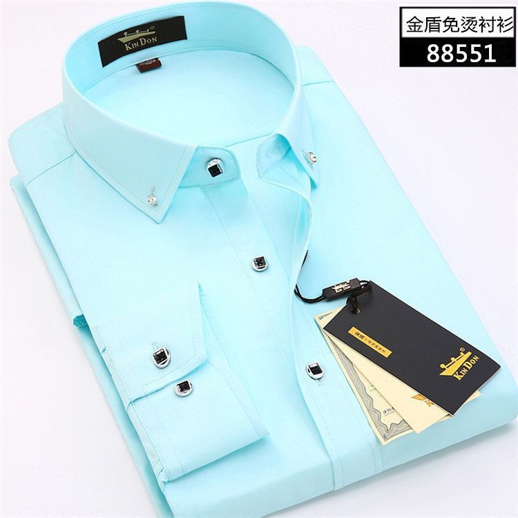 진둔 남성 셔츠 블루 비즈니스 셔츠 남성용 긴팔 셔츠 프로페셔널 한국식 무다림질 슬림핏 트렌디 남성 셔츠