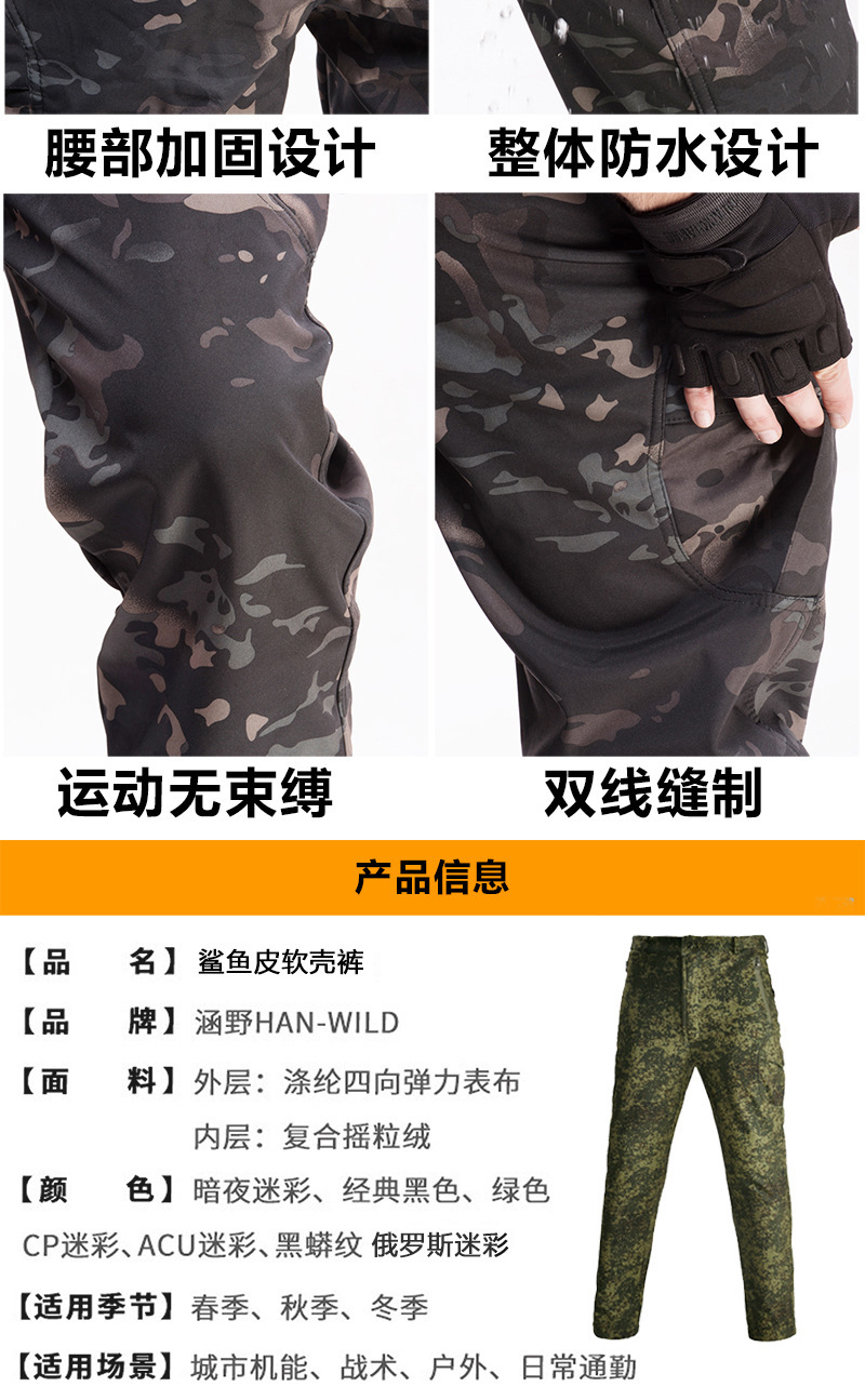 Hanye 야외 스포츠 기모 상어 피부 소프트 쉘 러쉬 바지 남성과 여성의 등산 바지 양털 바지 공장 판매