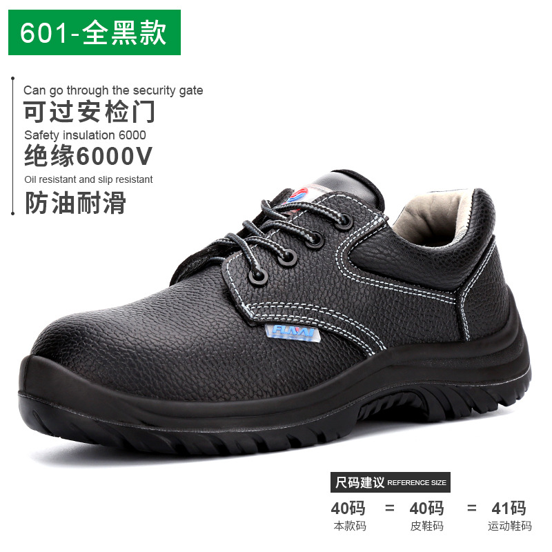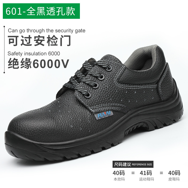 厂家直销无铁劳保鞋可过富士康安检门透气孔牛皮 pu底电工绝缘鞋