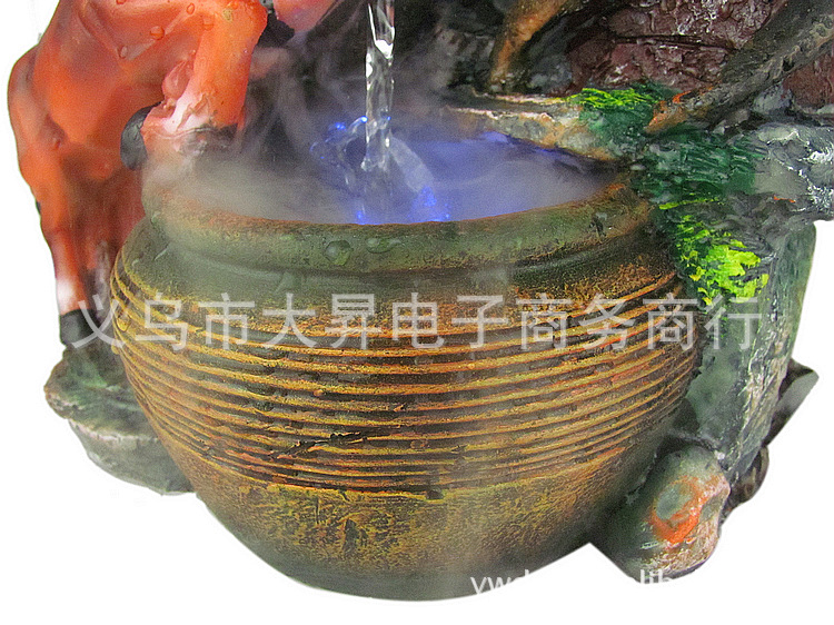 流水喷泉能够持续的产生大量负离子,喷泉的细小水珠同空气分子撞击,能产生大量的负氧离子,进一步消除空气中飘浮的正离子、异味及有害粉尘,吸附二氧化碳和家电产品释放的电磁辐射,令室内空气更清新;处在一个负离子环境将会使你感到轻松并且精神百倍!流水喷泉能够调节室内湿度及温度,改善室内空气质量。