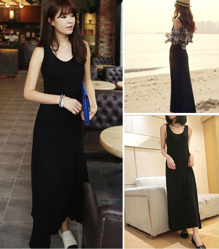 봄과 여름 느슨한 모달 원피스 원피스 여성의 스트랩 바닥 조끼 원피스 비치 원피스 머리카락의 세대를 플러스 사이즈