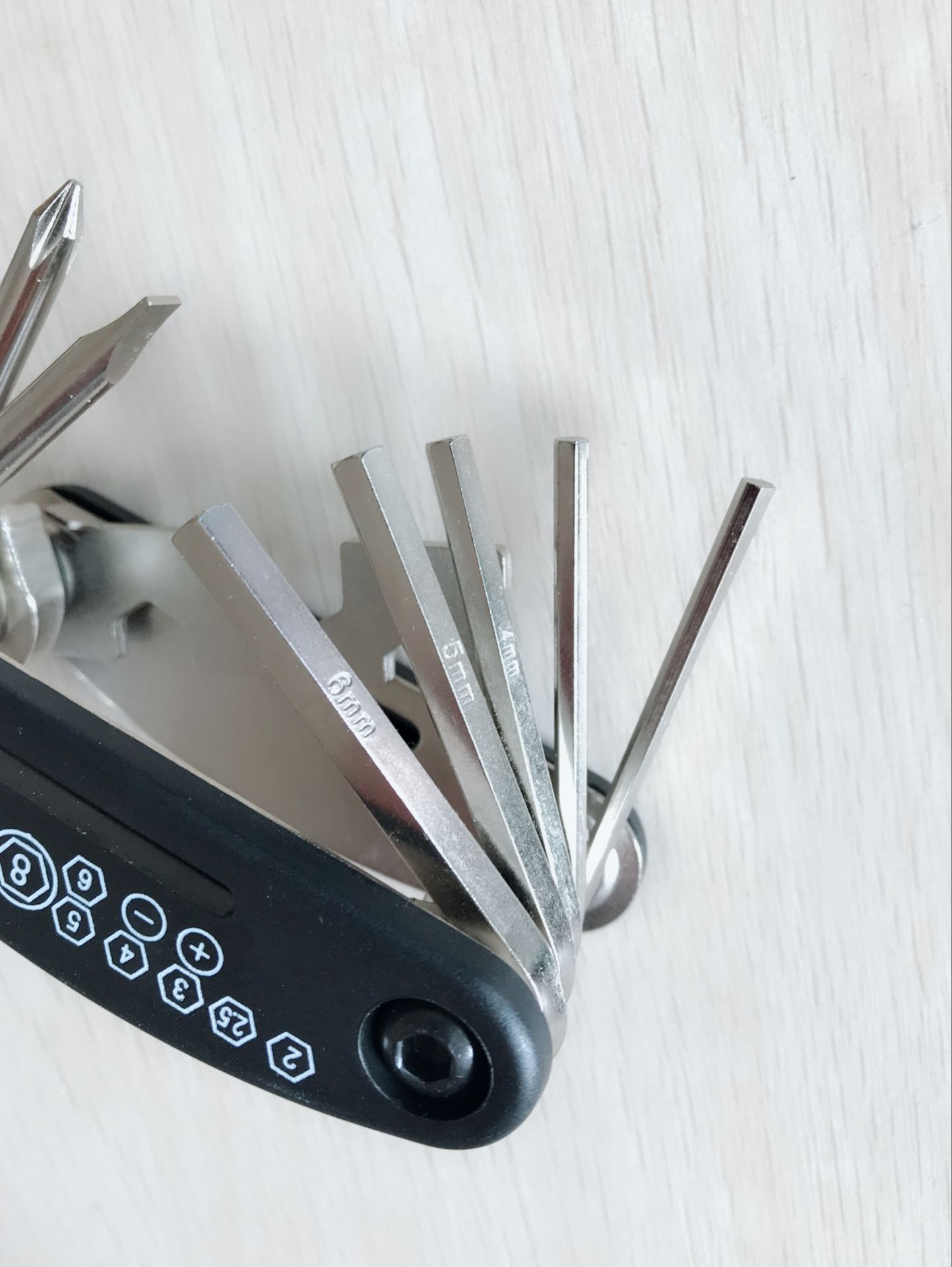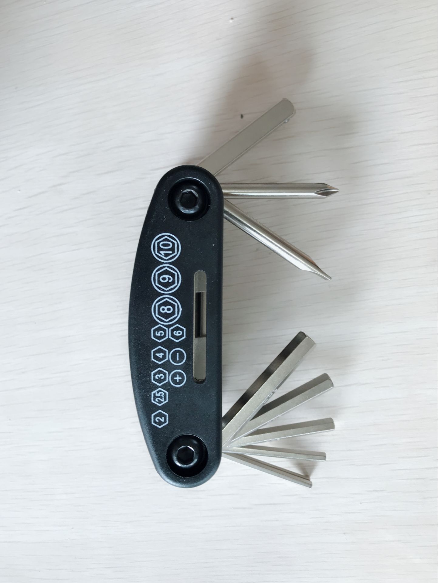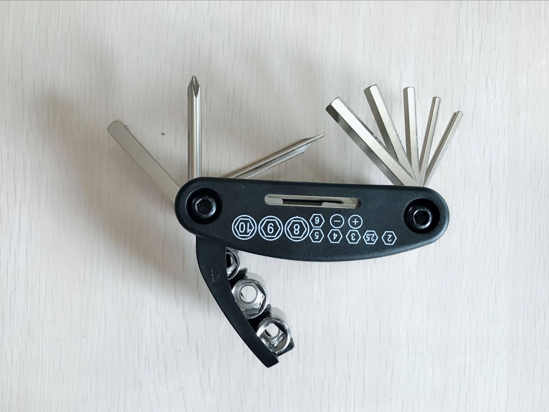 1.多用自行车维修工具:2mm/2.5mm/3mm/4mm/5mm/6mm内六角扳手各一支;