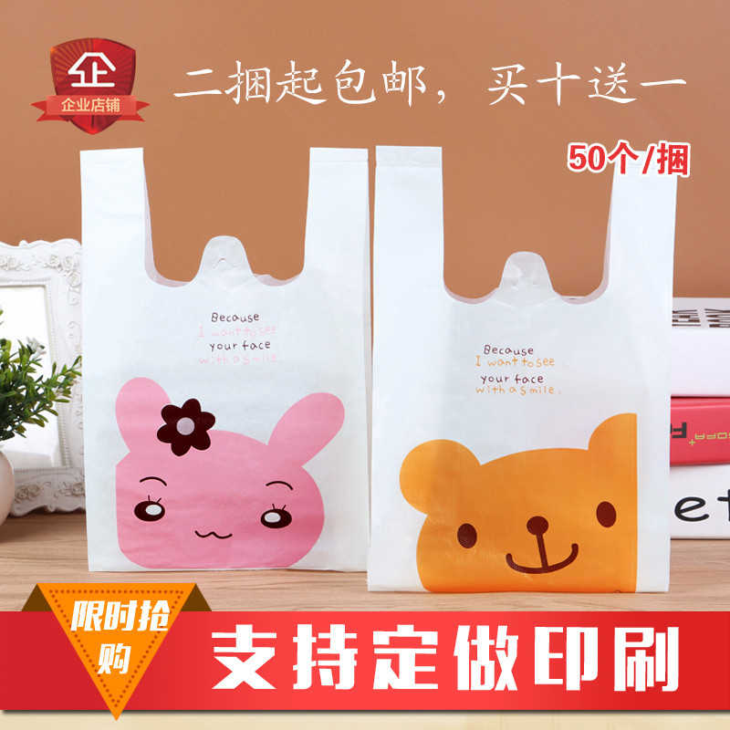 全新料塑料袋,一捆50只,满6捆包邮批发(新疆,西藏,青海不包邮,请联系客服 补差邮费) 满10捆送一捆,混批10捆送小号袋,欢迎大家选购。小熊 小兔两种图案随机发货,需要那款也可备注留言。TB2YOBwtVXXXXayXpXXXXXXXXXX_!!