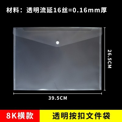 厂家直销:A3透明文件袋 大号 A3按扣袋 钮扣袋 8K画纸文具收纳袋 8开资料袋,材料厚度:18丝=0.18毫米