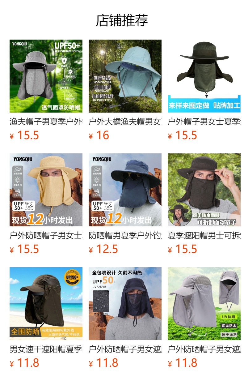 모자 야외 어부 모자 남자 여름 태양 모자 등산 낚시 모자 여자 360도 자외선 차단 모자스토어 가기