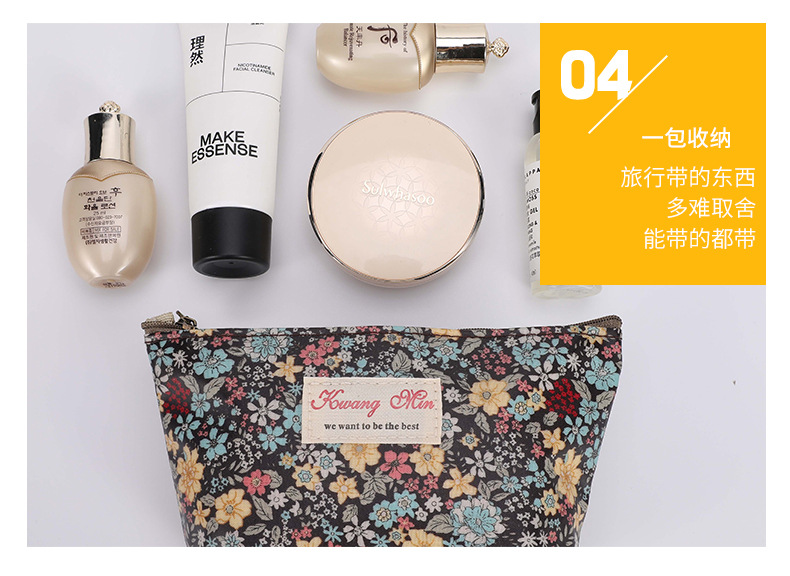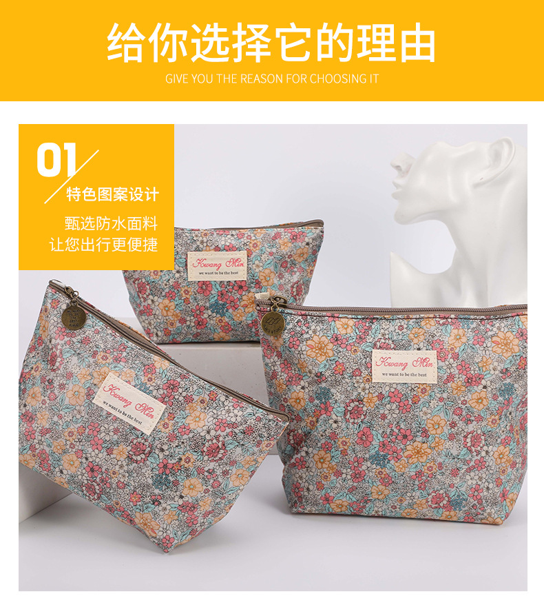새로운 스타일 화장품 가방 여성의 대외 무역 한국 스타일 꽃 세척 가방 휴대용 방수 면 보관 가방 대용량 여행
