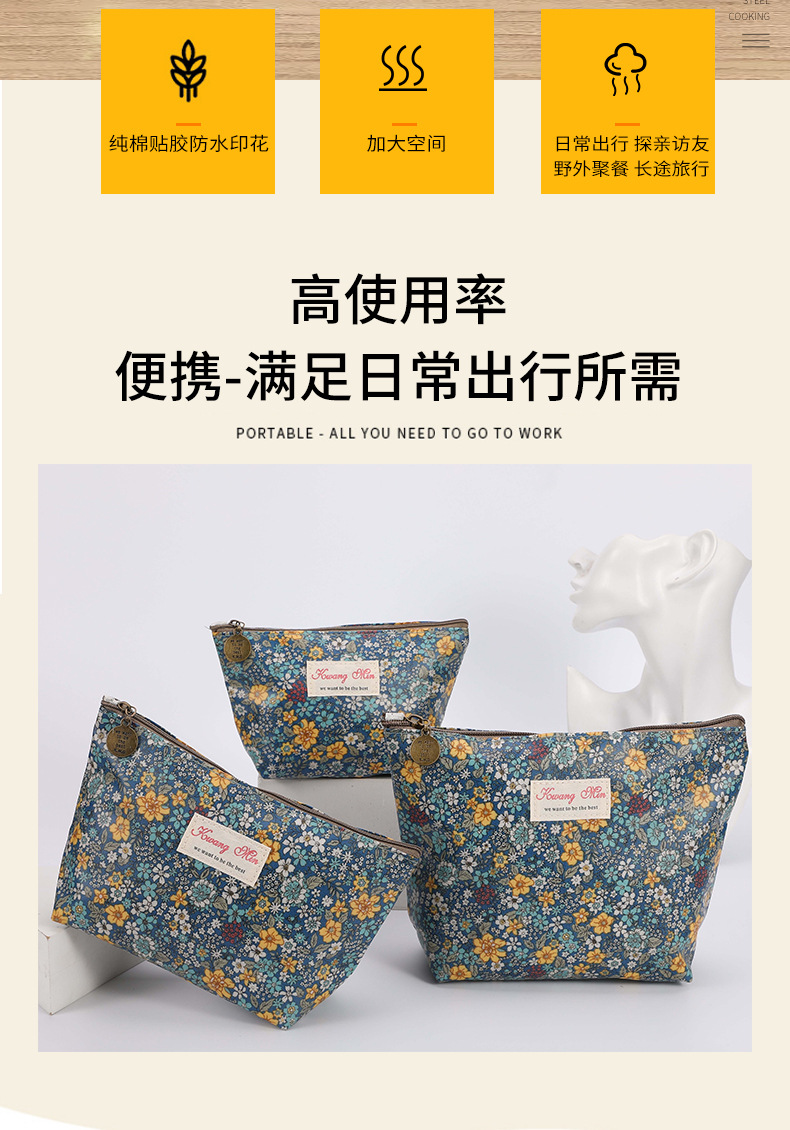 새로운 스타일 화장품 가방 여성의 대외 무역 한국 스타일 꽃 세척 가방 휴대용 방수 면 보관 가방 대용량 여행스토어 가기