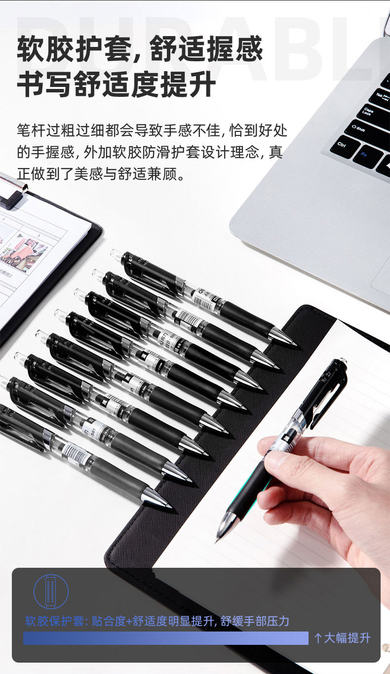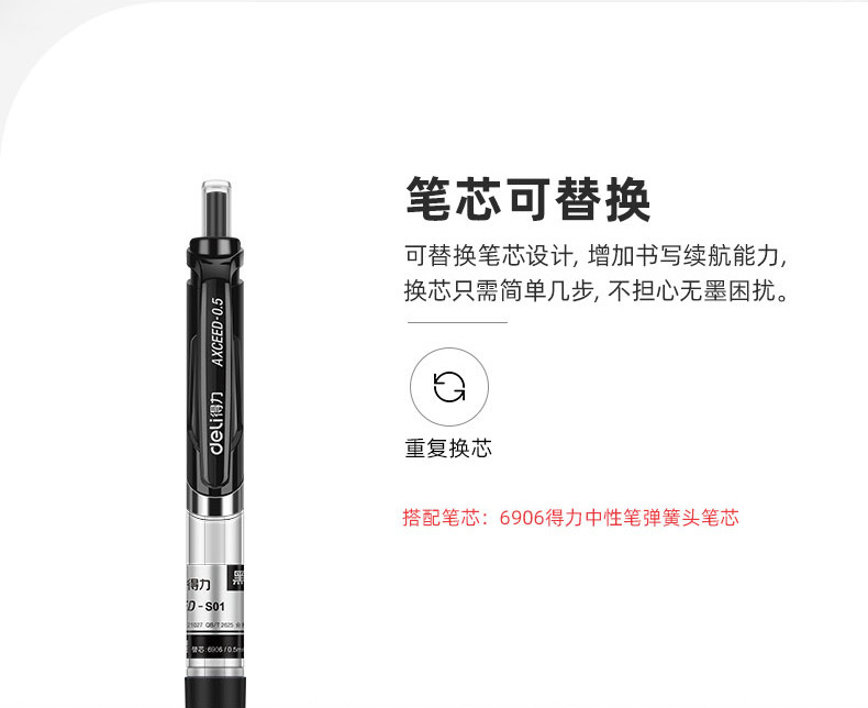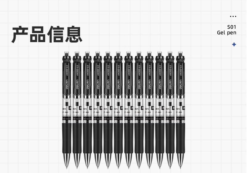델리 S01 프레스형 젤 펜 0.5mm 학생용 펜 서명용 펜 검정색 카본 펜 사무실 학습 시험용 펜