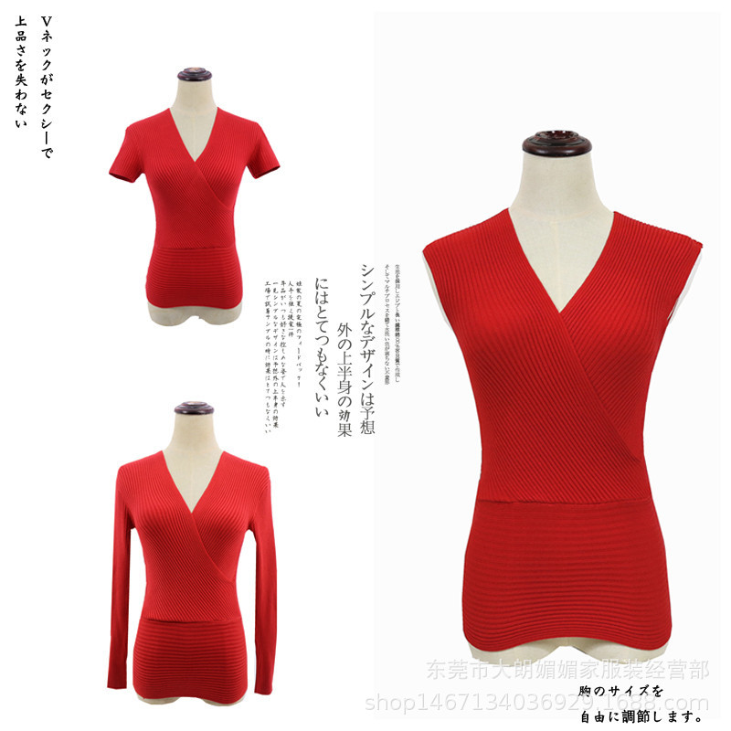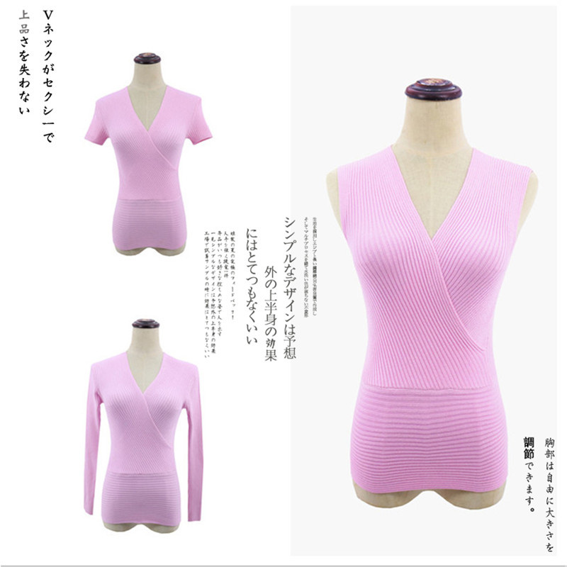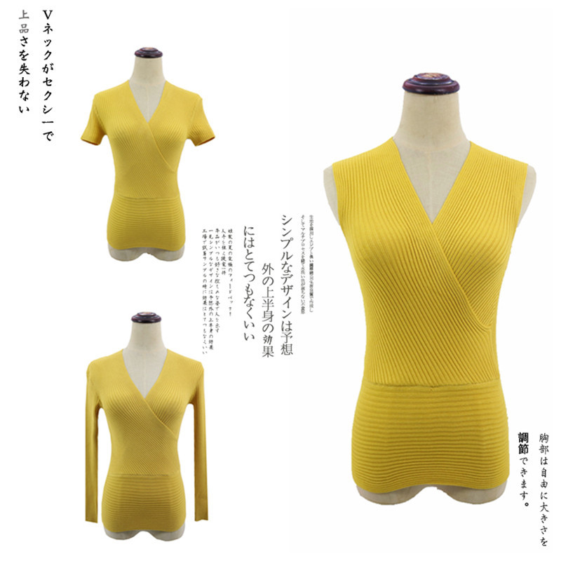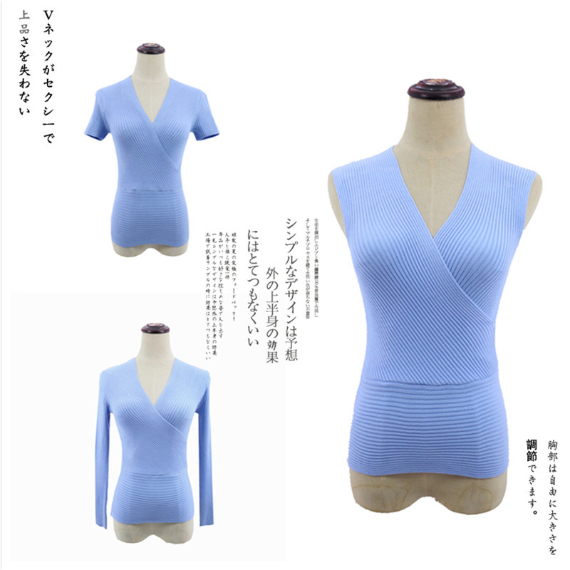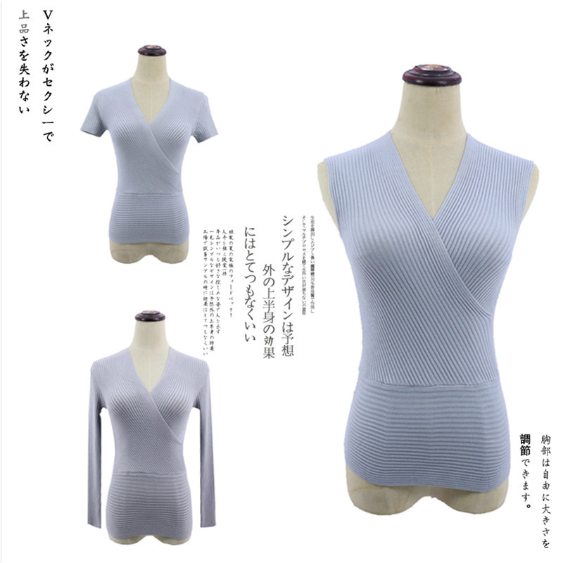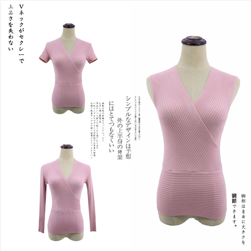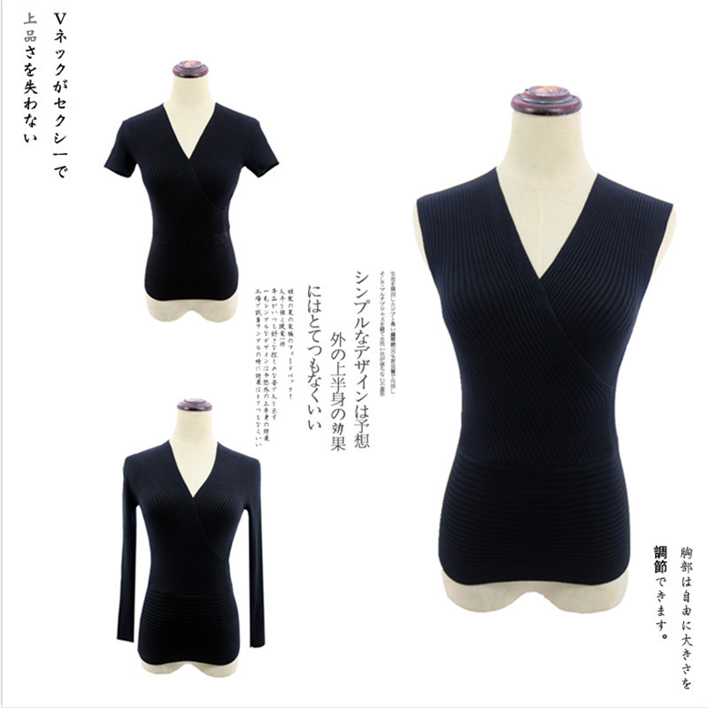섹시한 깊은 V-넥 타이트 스웨터 리브 니트 조끼 베이스 셔츠 여성용 트렌디 착용 새 봄옷 한국 스타일 내부 착용스토어 가기