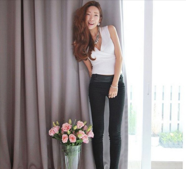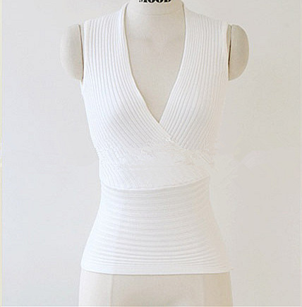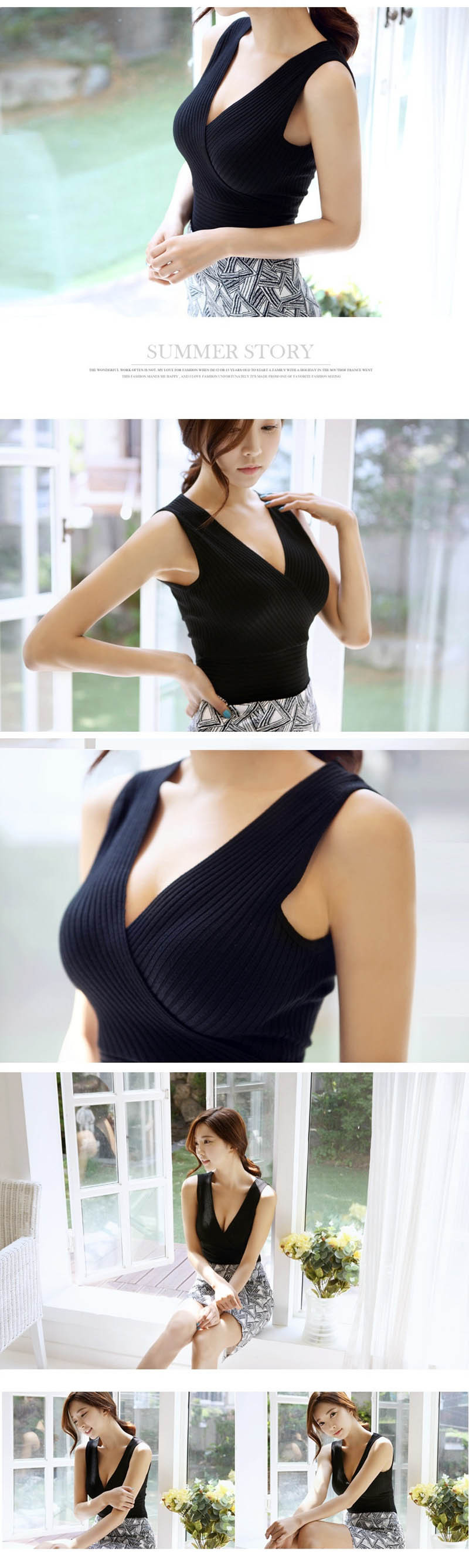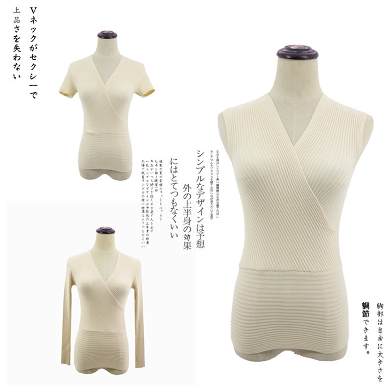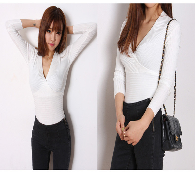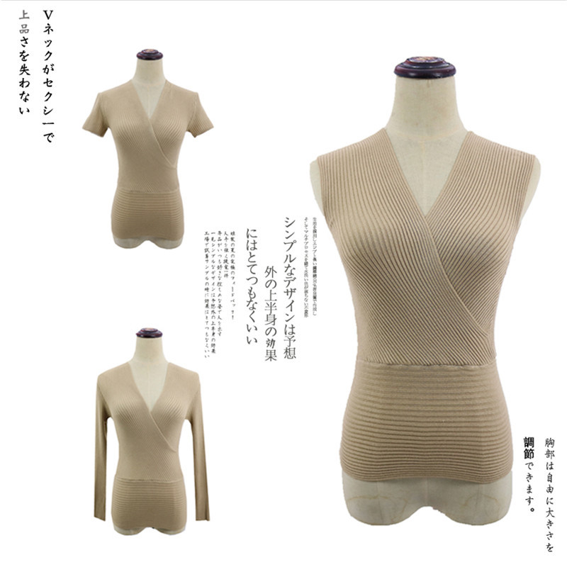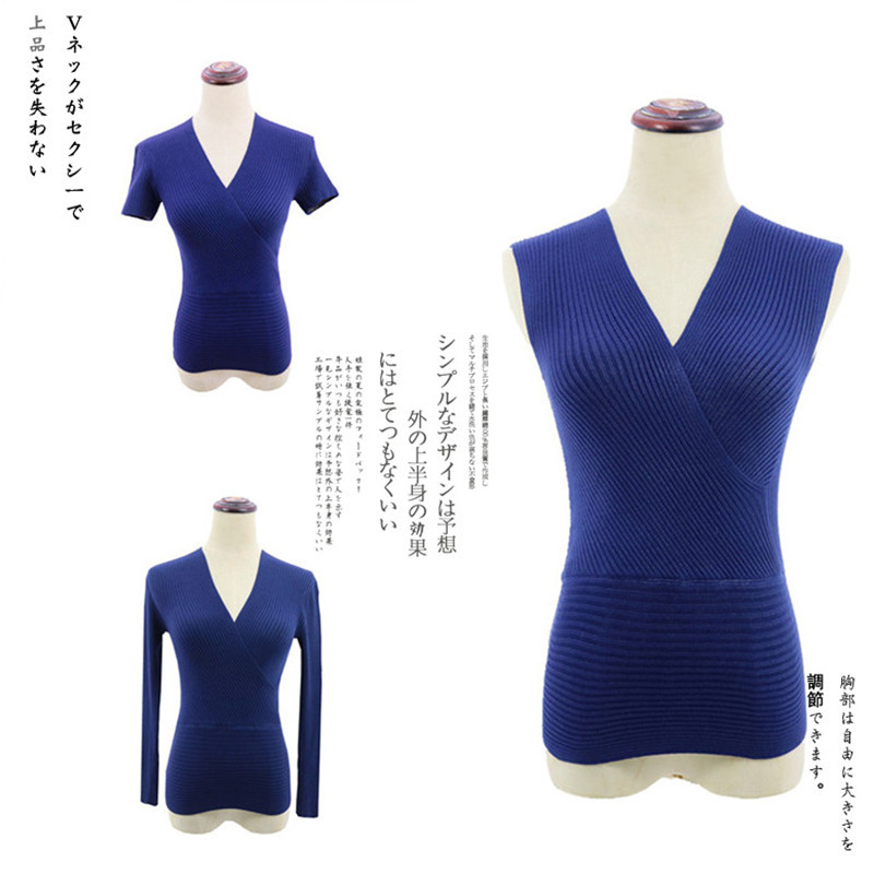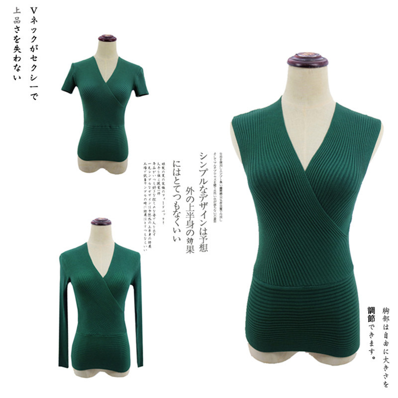 섹시한 깊은 V-넥 타이트 스웨터 리브 니트 조끼 베이스 셔츠 여성용 트렌디 착용 새 봄옷 한국 스타일 내부 착용스토어 가기