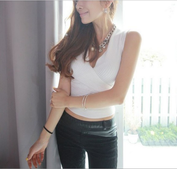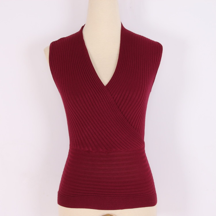 섹시한 깊은 V-넥 타이트 스웨터 리브 니트 조끼 베이스 셔츠 여성용 트렌디 착용 새 봄옷 한국 스타일 내부 착용
