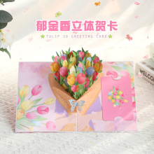 情人节新款立体贺卡手捧郁金香花束创意手工纸雕清新祝福感恩卡片