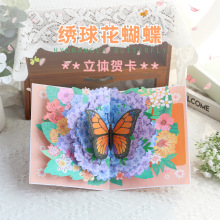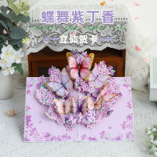 情人节新款立体贺卡蝶舞紫丁香创意手工纸雕小清新祝福感恩外贸卡