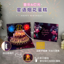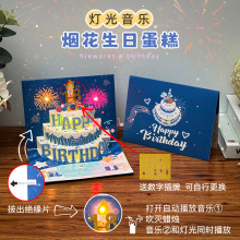 生日蛋糕立体贺卡星语音乐灯光烟花祝福礼物创意跨境3D小卡片批发