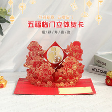 新款元旦春节福禄寿喜财立体贺卡拜年送家人祝福礼物小卡跨境批发