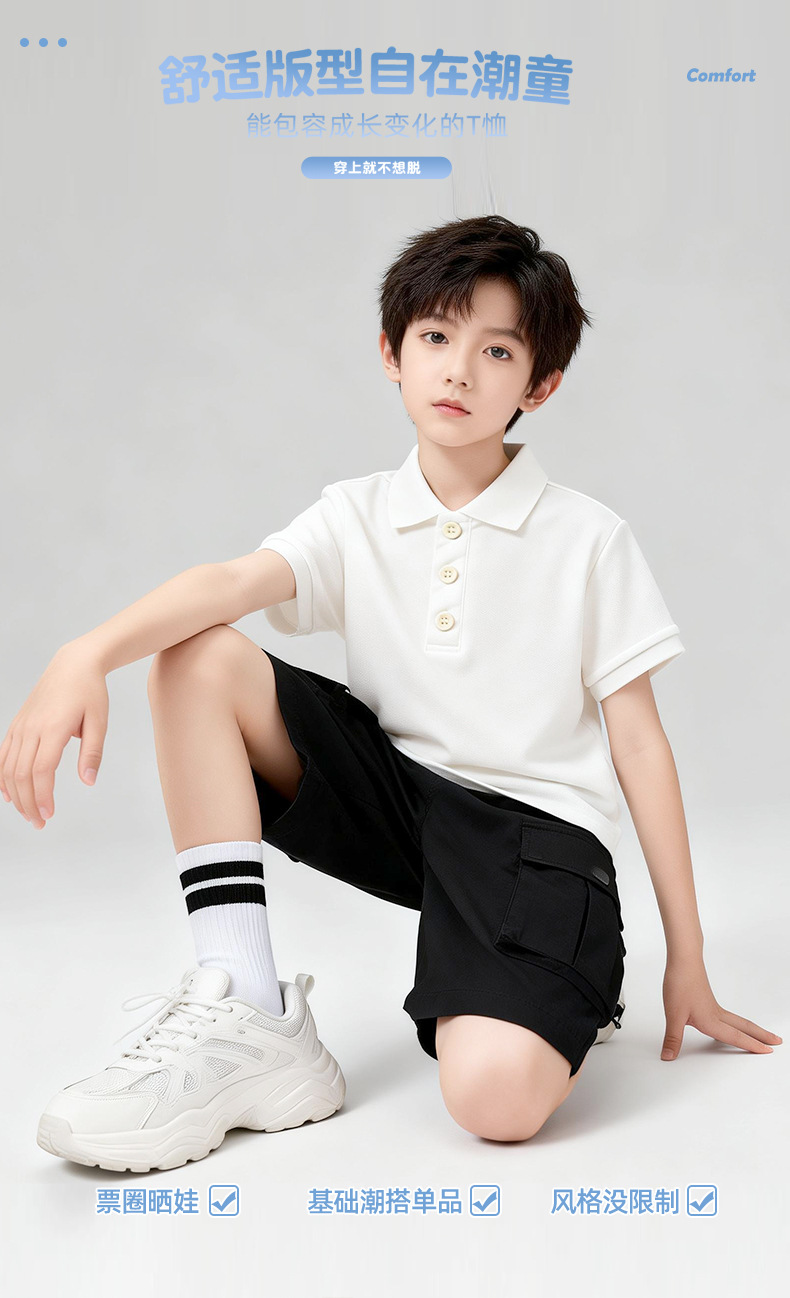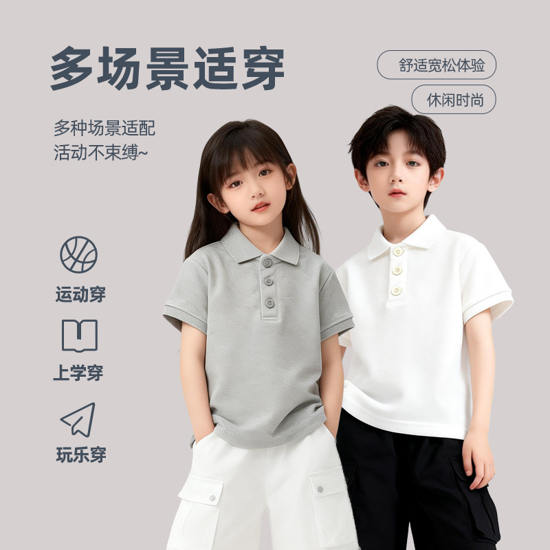 2026 신제품 아동용 라펠 반팔 여름 신상 티셔츠 남녀 아동용 단색 폴로 티셔츠 순면스토어 가기