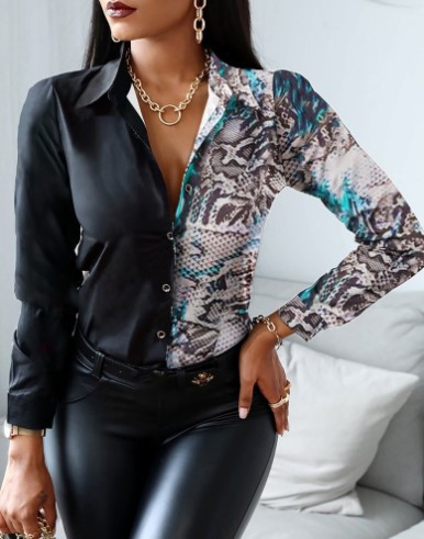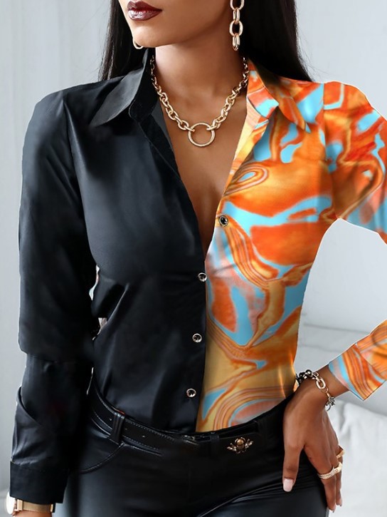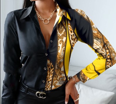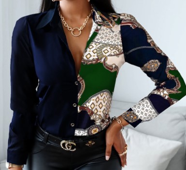 2022 AliExpress는 아마존 인기 가을과 겨울 긴 소매 V-넥 컬러와 일치하는 복고풍 스타일 셔츠 탑