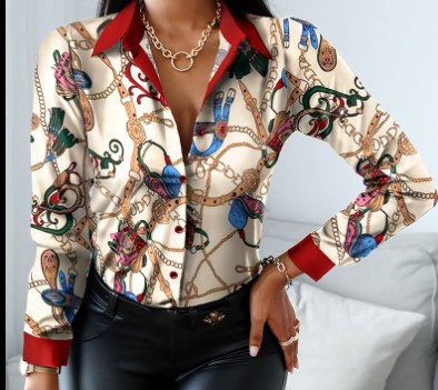 2022 AliExpress는 아마존 인기 가을과 겨울 긴 소매 V-넥 컬러와 일치하는 복고풍 스타일 셔츠 탑스토어 가기
