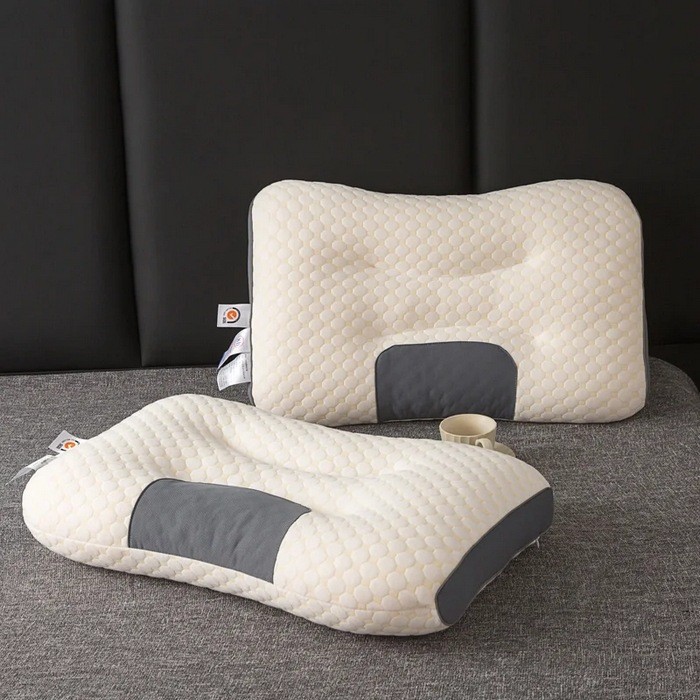 🔵设计理念:根据人体工程学设计5分区,满足多种睡姿的颈部承托, 平面可自由睡,肩颈兼顾,翻身不落枕,圆柱面可抬高头部,很适合颈椎曲度偏直人群~