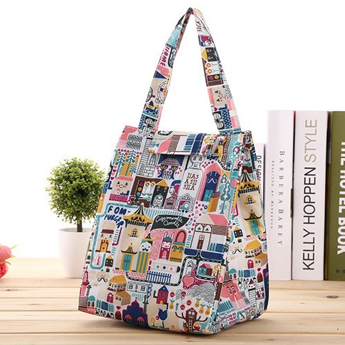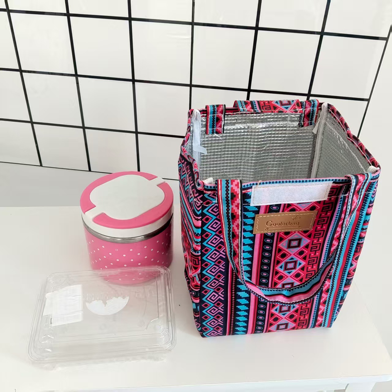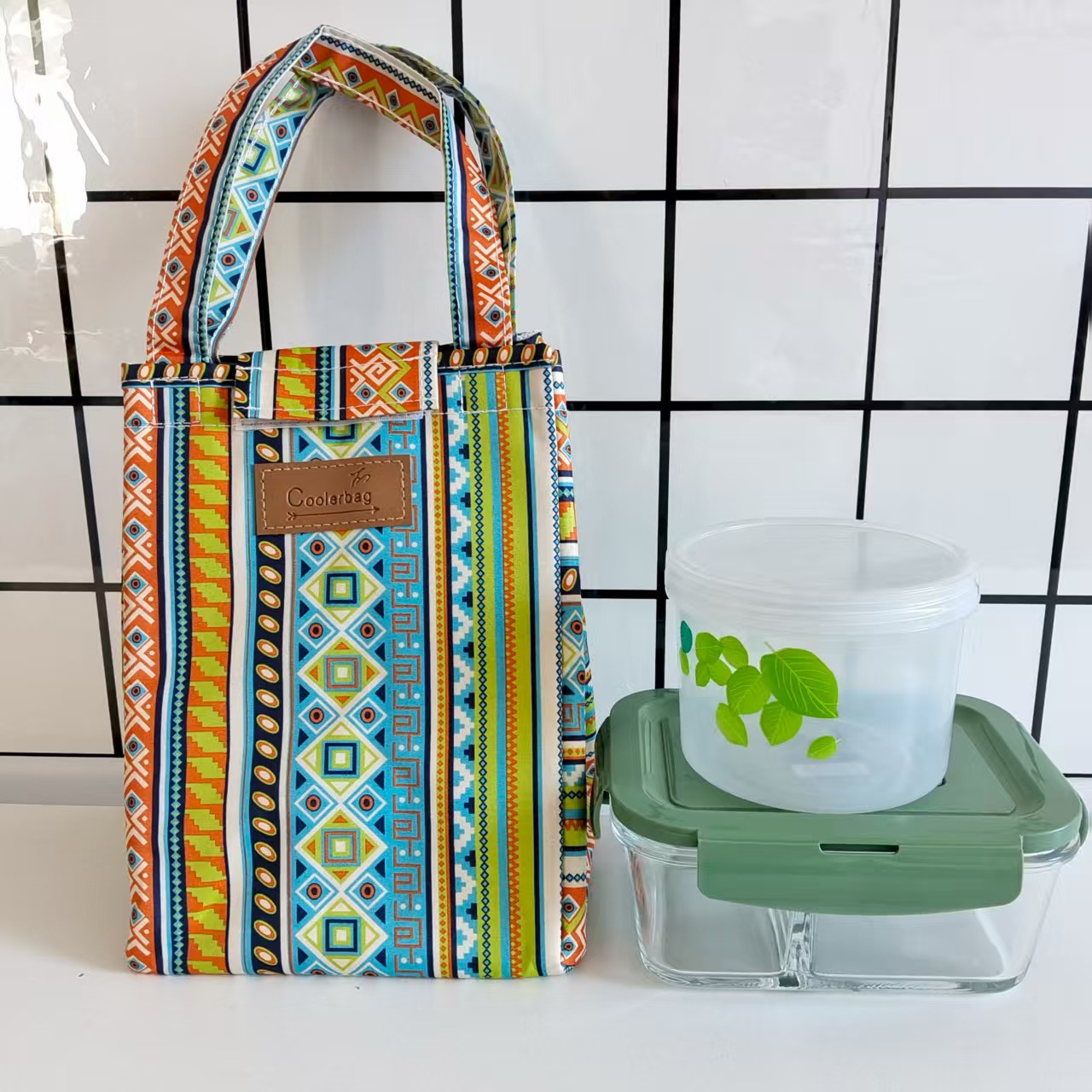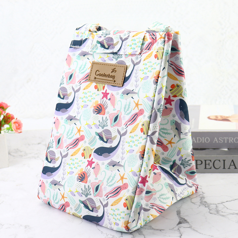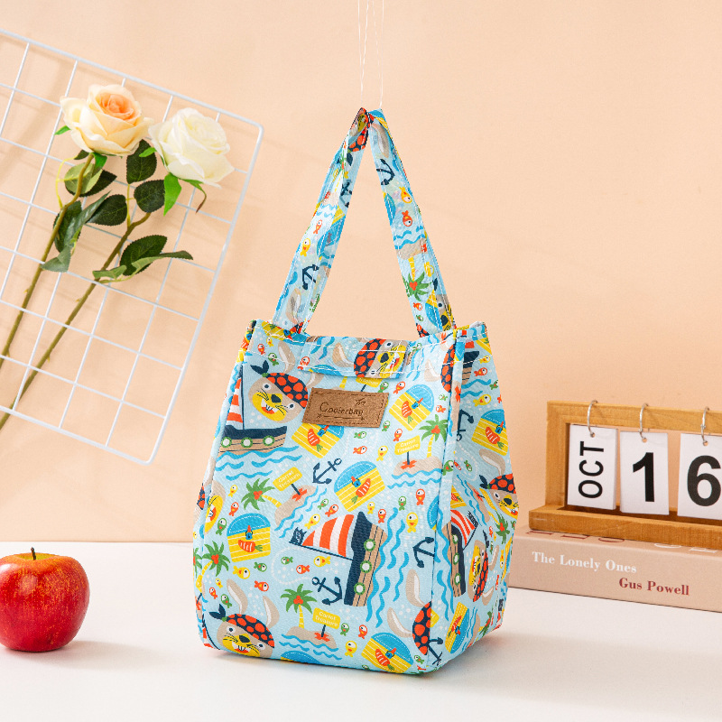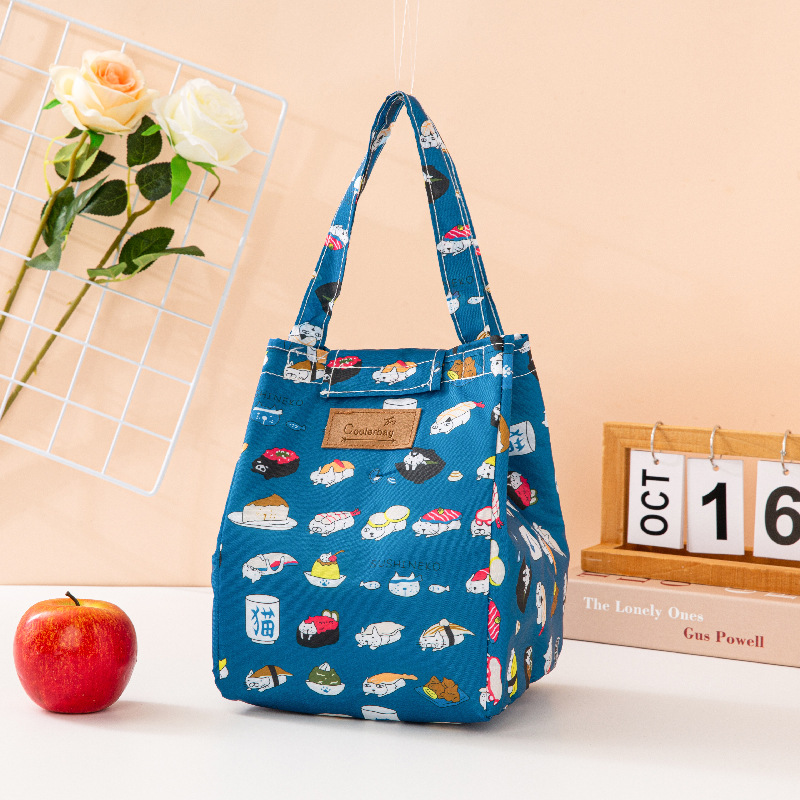 핀페이 한국형 휴대용 도시락 가방 야외 보온 도시락 가방 직장인 도시락 가방 접이식 프린트 보온 가방